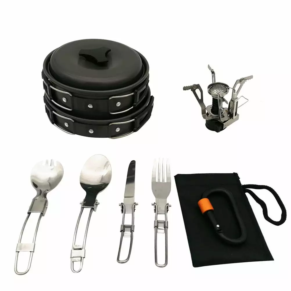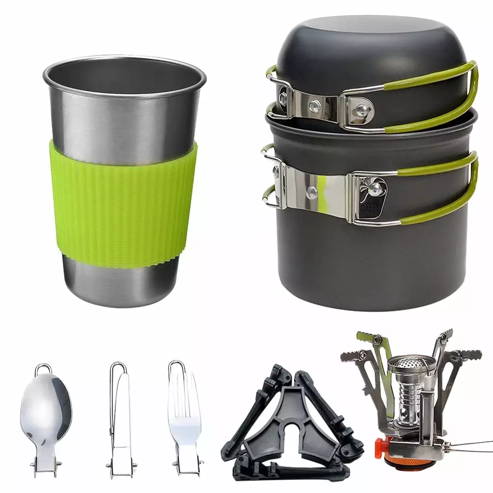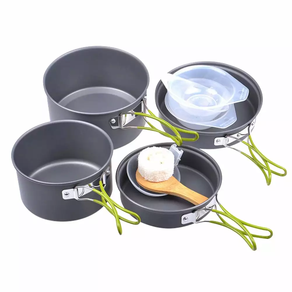 ziertyon Camping Cookware Pot Frying Pan Set Heat-Resistant Non-Stick Lightweight Pot Set Outdoor Cooking Utensils