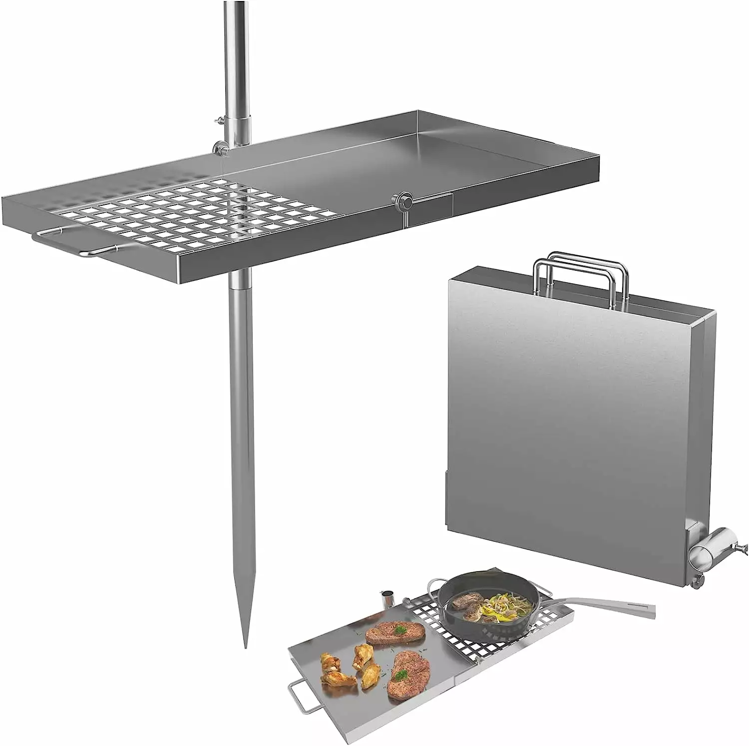 ALSLIAO Portable Campfire Grill Stainless Steel Camping Grill Grate Gas Stove Stand