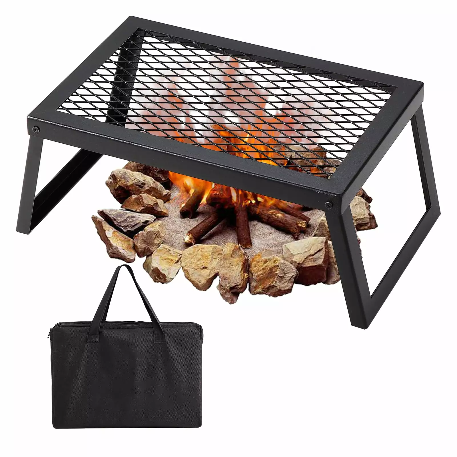 Benafini Portable Campfire Grill Stainless Steel Camping Grill Grate Gas Stove Stand