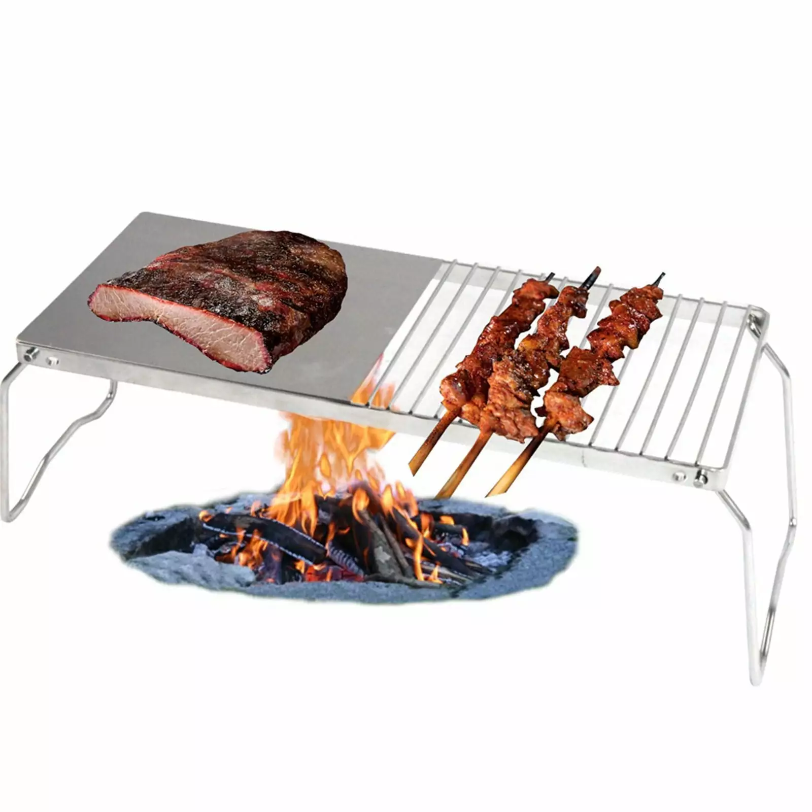 XOAIHY Folding Campfire Grill Stainless Steel Grate. Over Fire Camping Grill. Tainless Steel Barbecue Tools-Use Iron Table Grill.For Outdoor Picnic Bbq