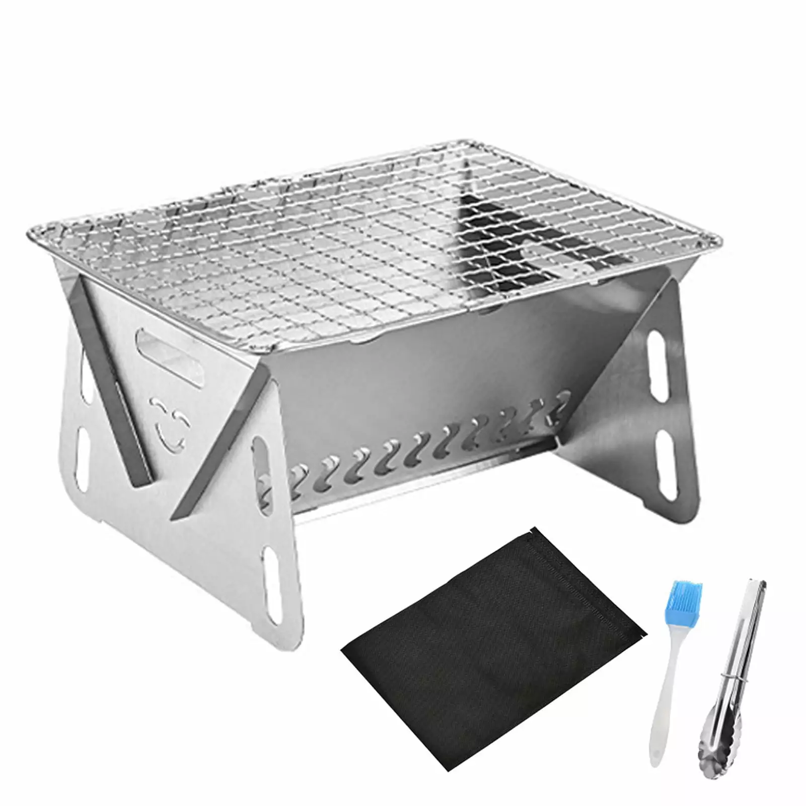 ziertyon Folding Campfire Grill Portable Camping Grill Rustproof Corrosion Resistant Hollow Design Outdoor Indoor Barbeque Grill