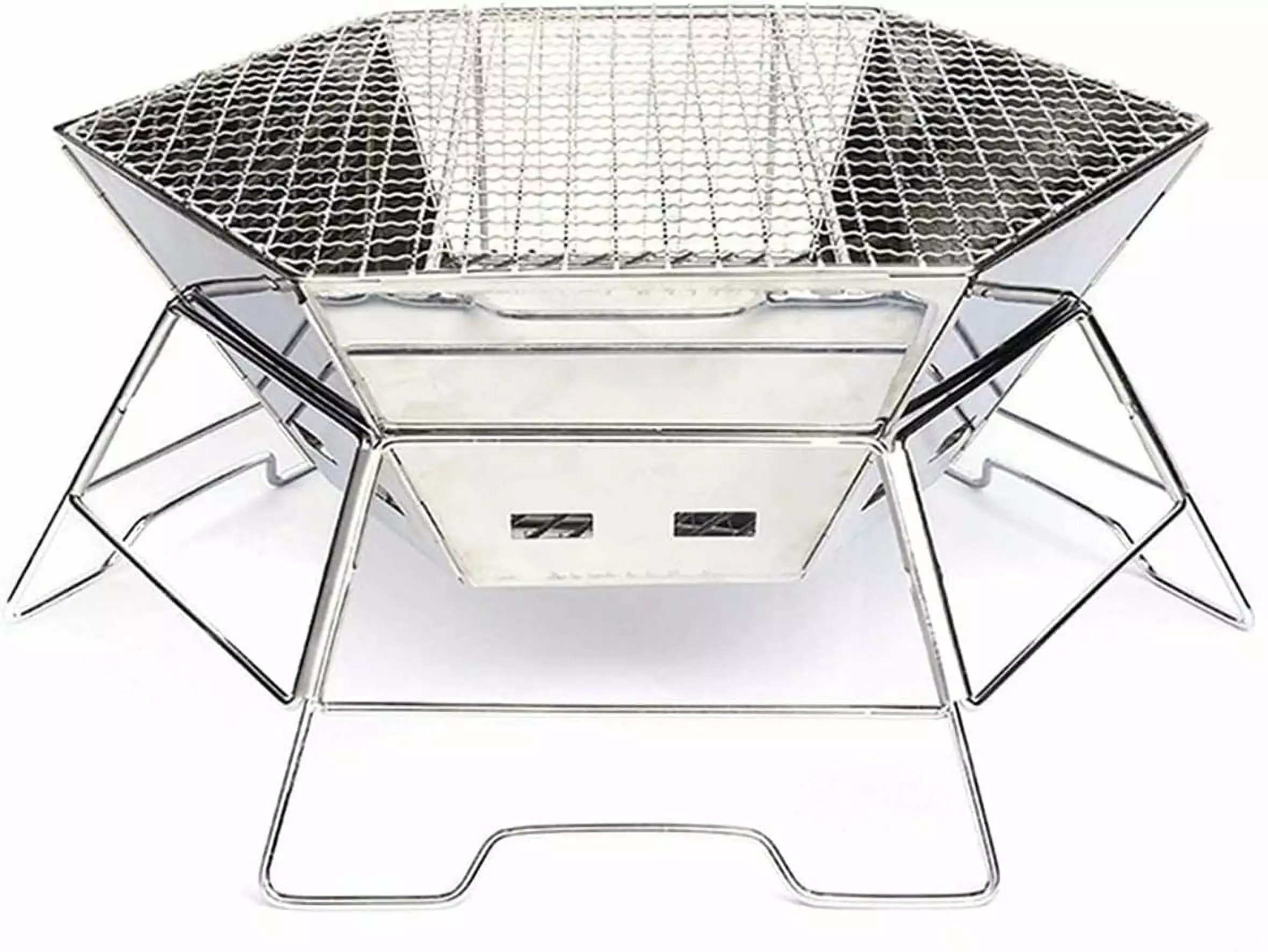 CENL Outdoor Fire Stand Grill with Stainless Steel Foldable Mesh Net for Camping