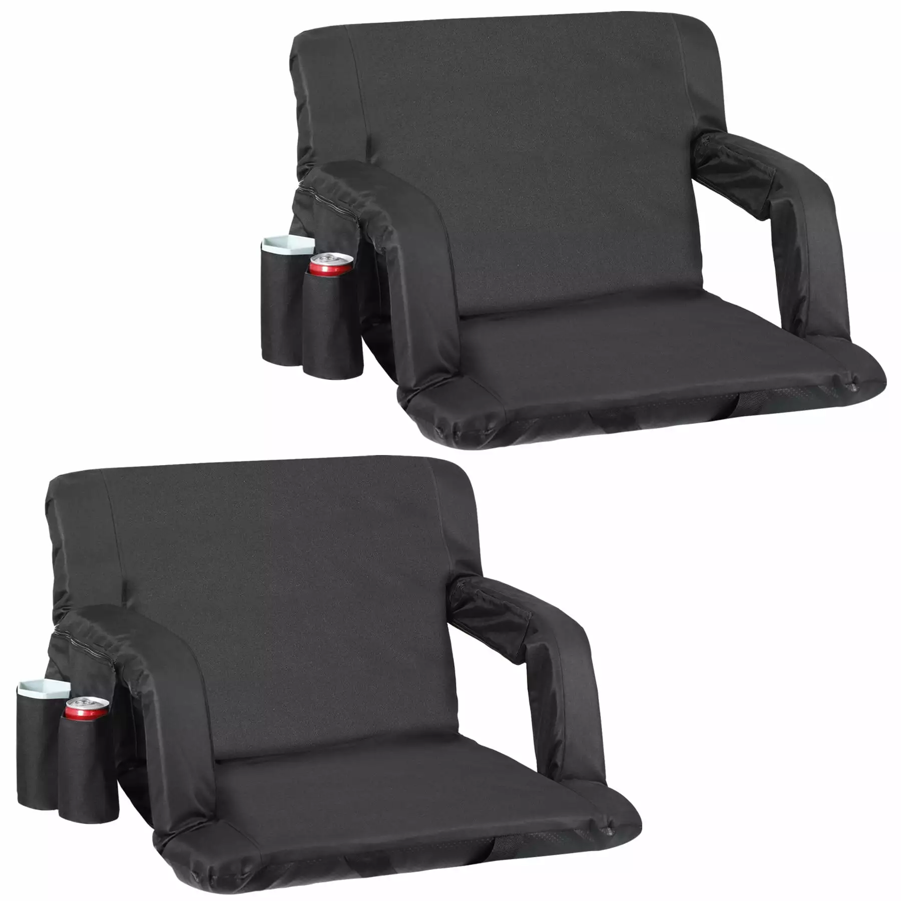 ZenSports 2 Pack Stadium Chair Seat for Bleachers 6 Reclining Positions – Black