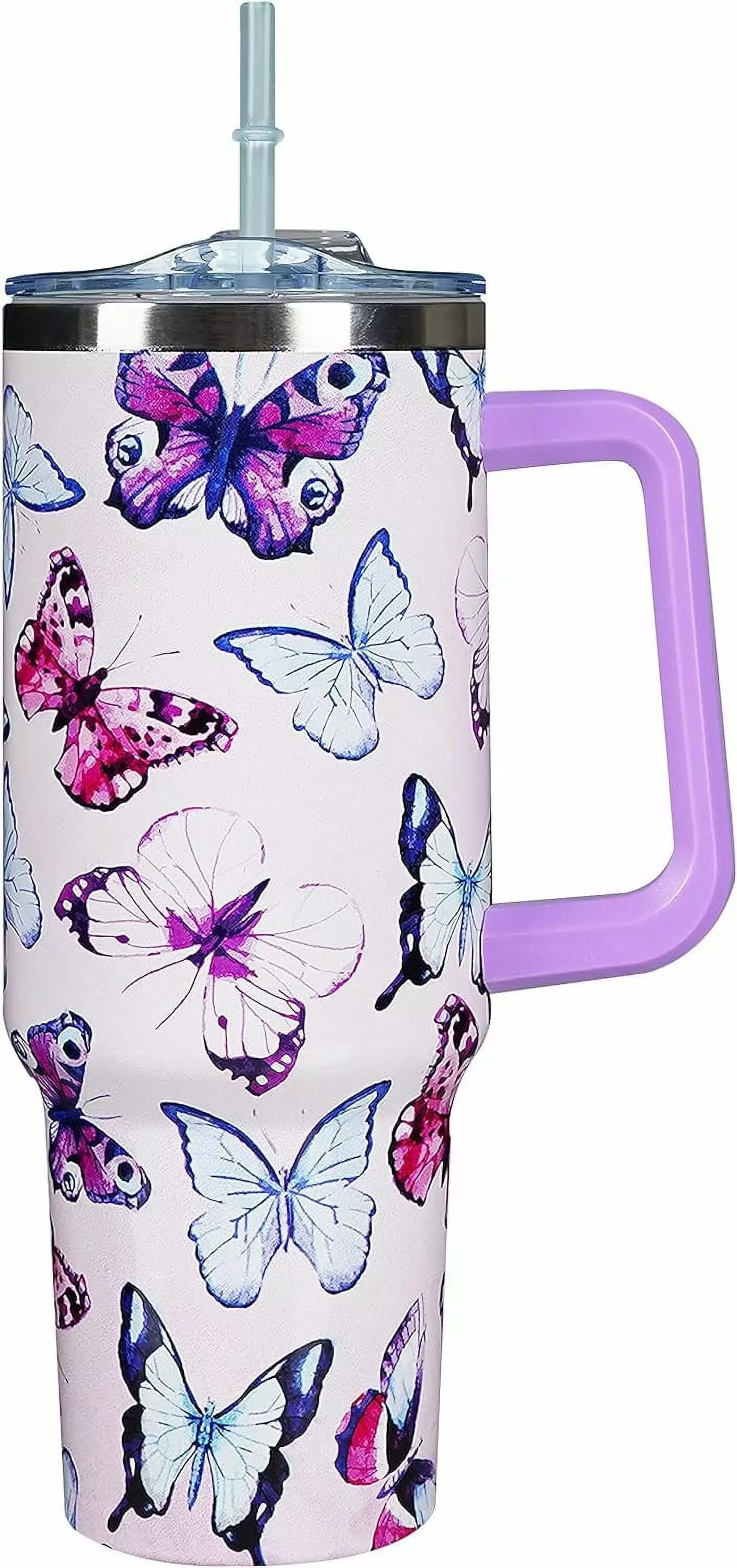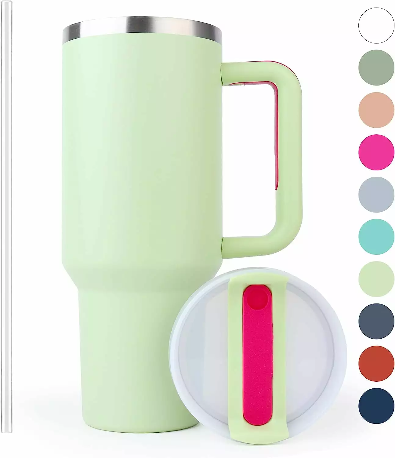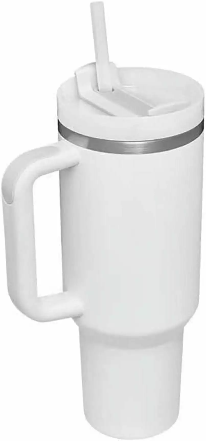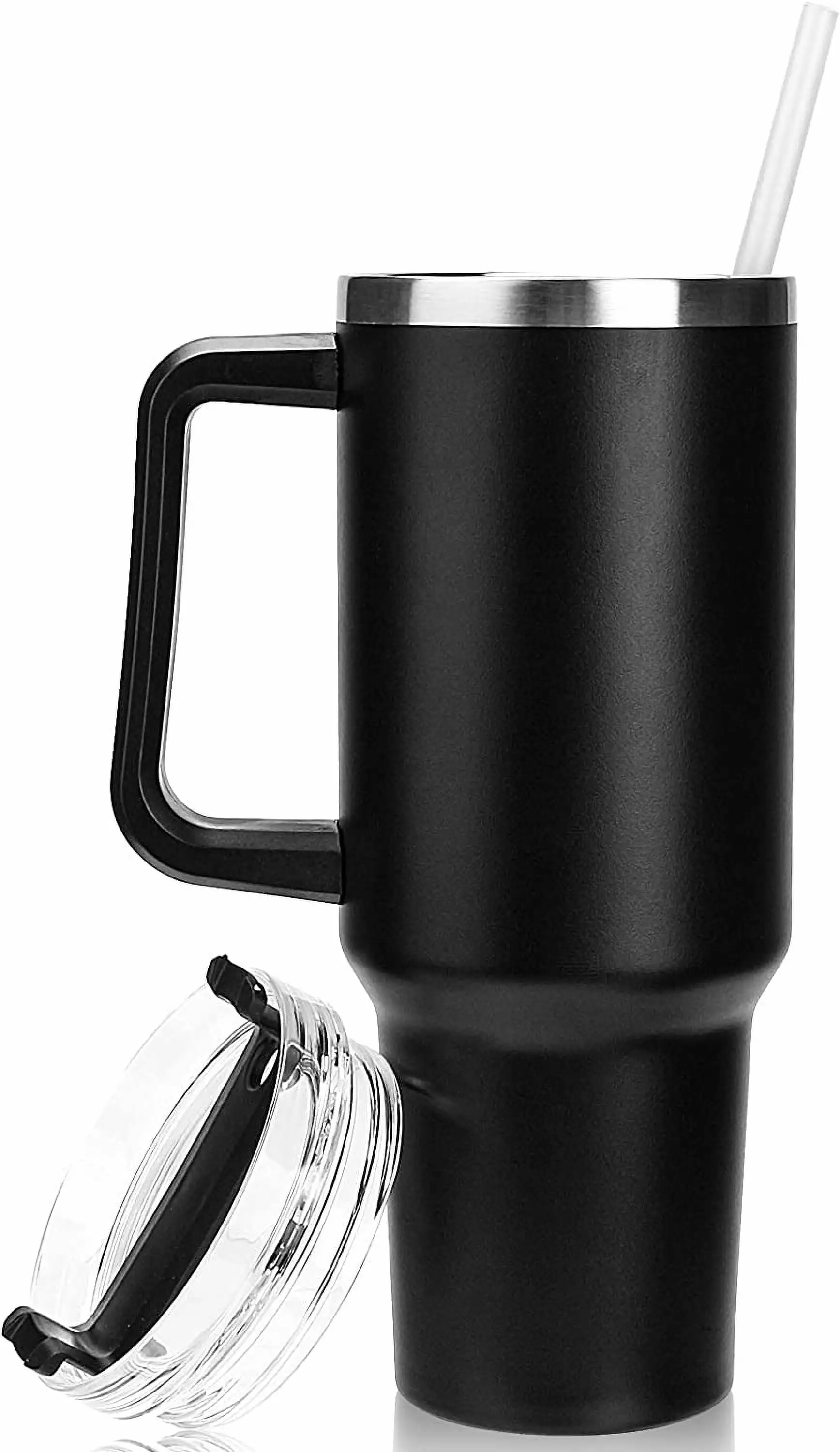 40 oz Water Tumbler Cup Stainless Steel Insulated Bottle Handle & Straw Travel