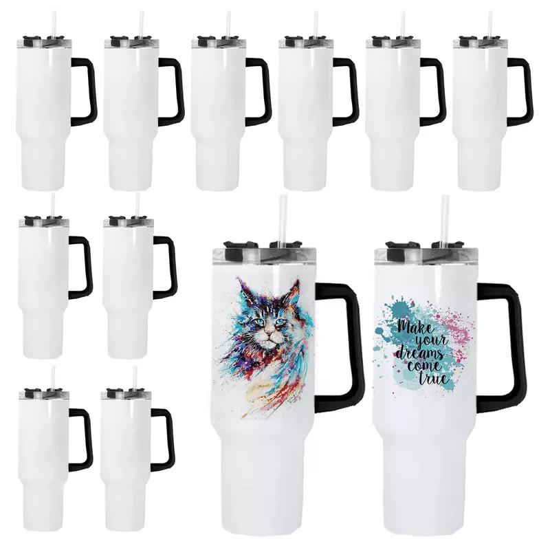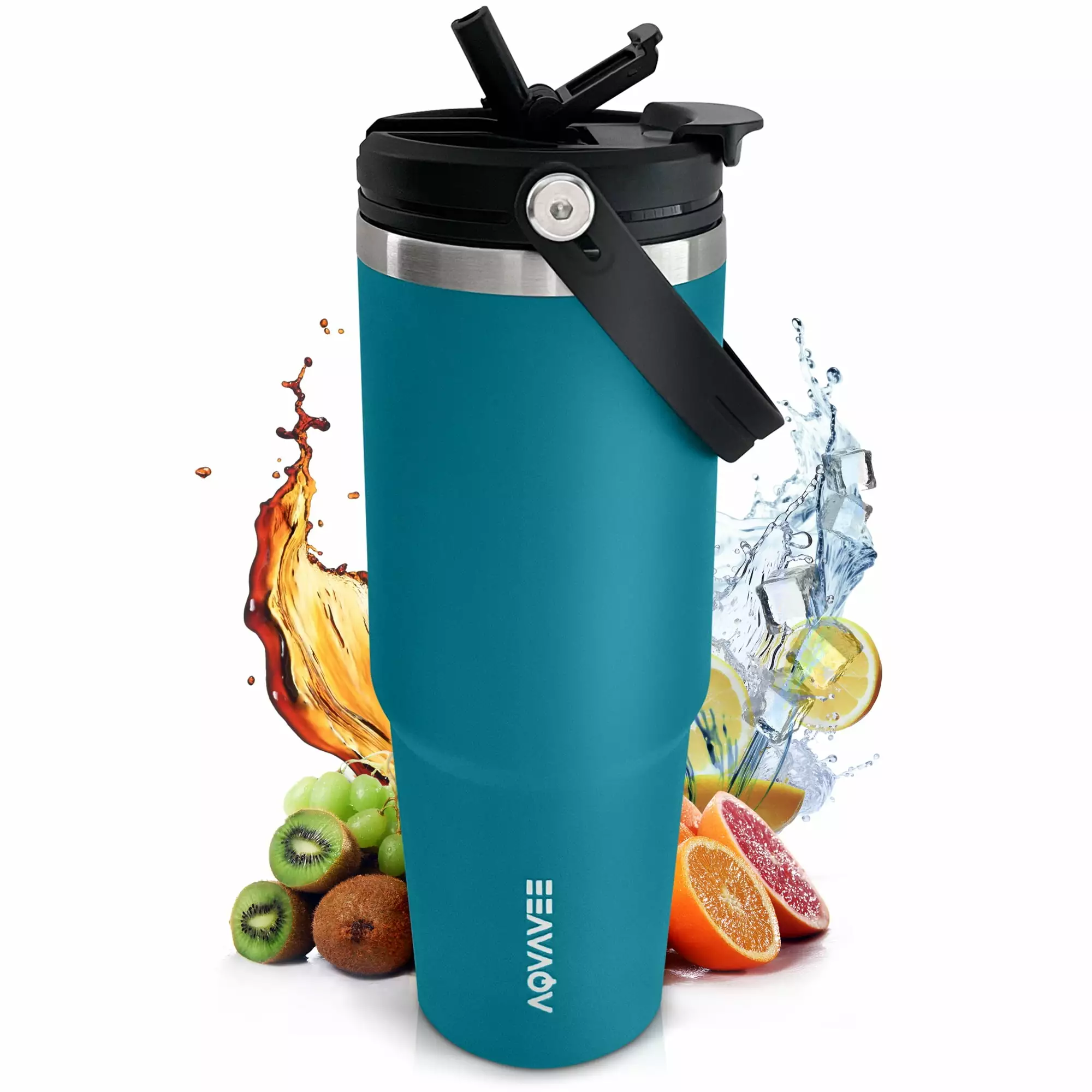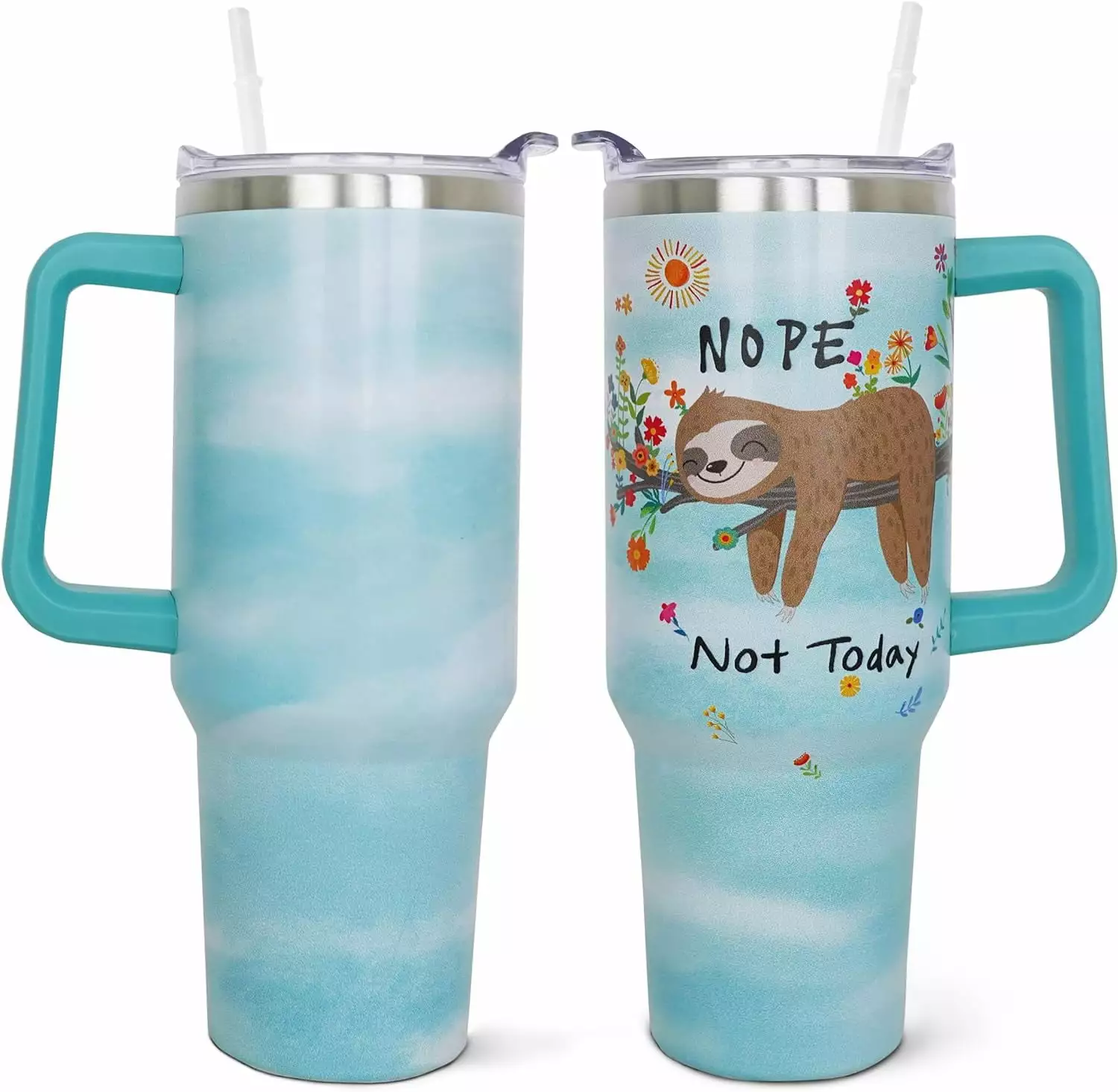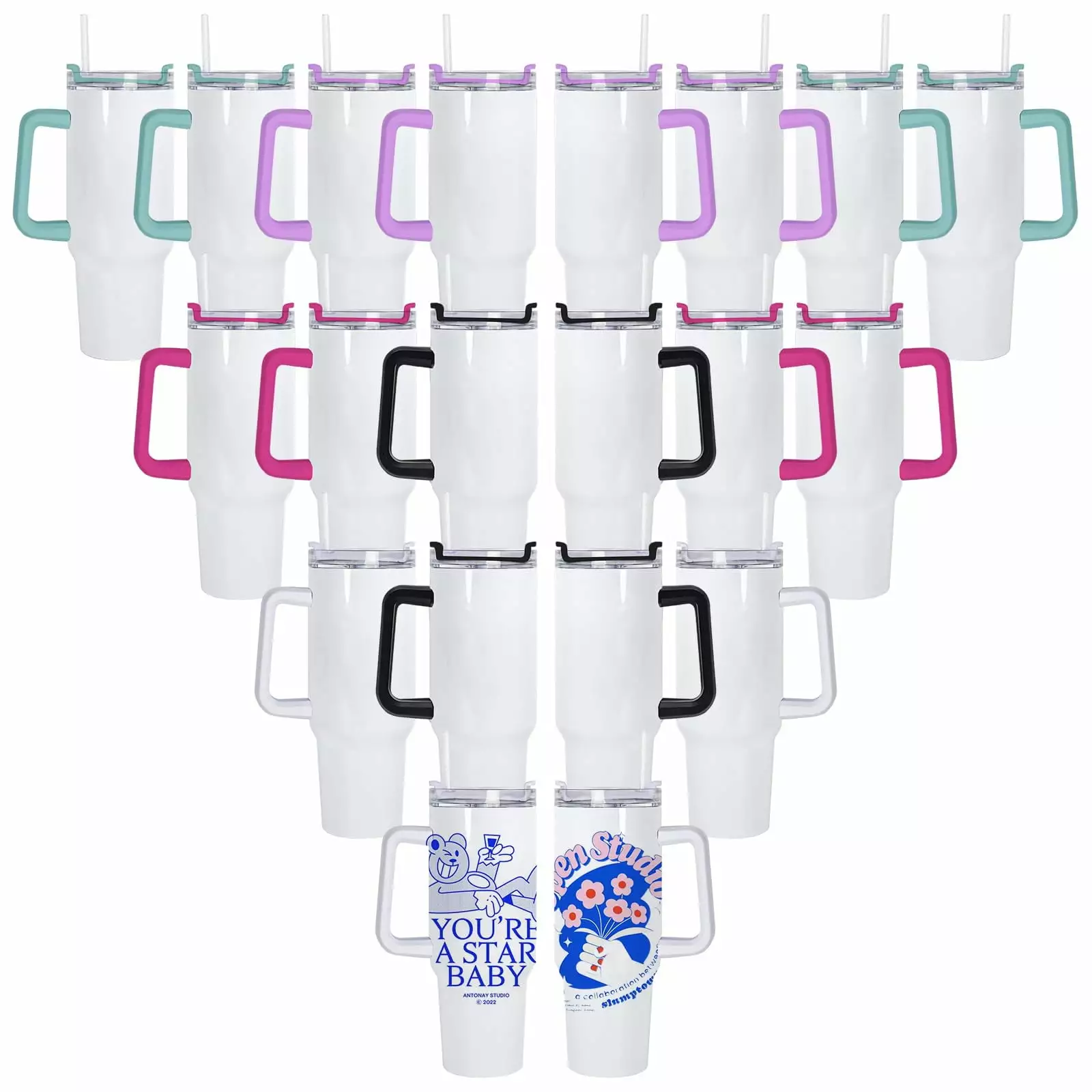 40 oz Water Tumbler Cup Stainless Steel Insulated Bottle Handle & Straw Travel