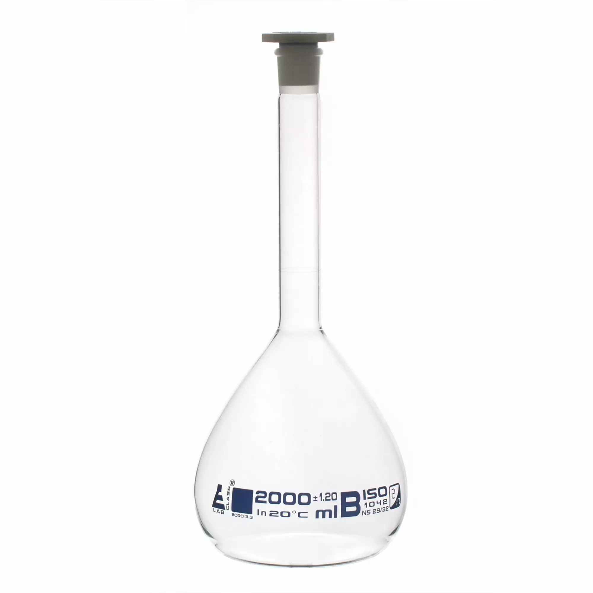 Uxcell 2000ml Tolerance 0.6ml 3.3 Borosilicate Glass Volumetric Flask with Plug Cap. Clear