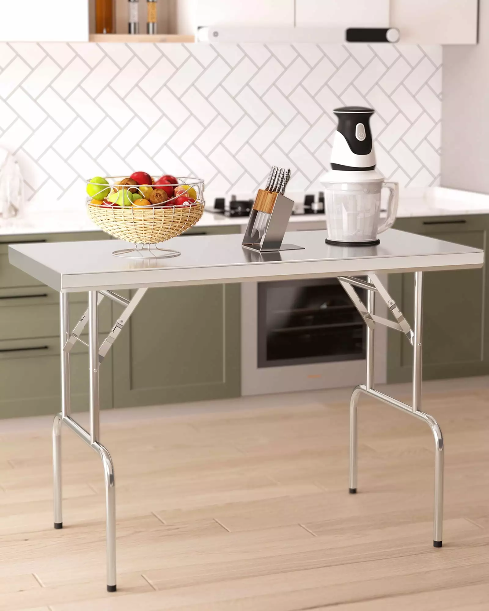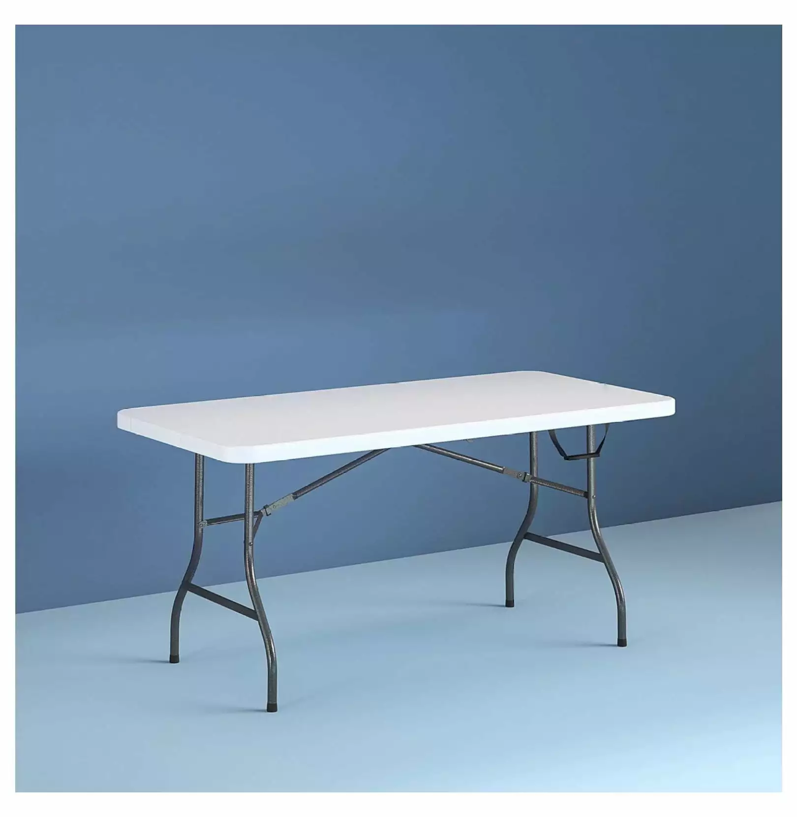 White Table Top and Gray Plastic-Sprayed Steel Pipe