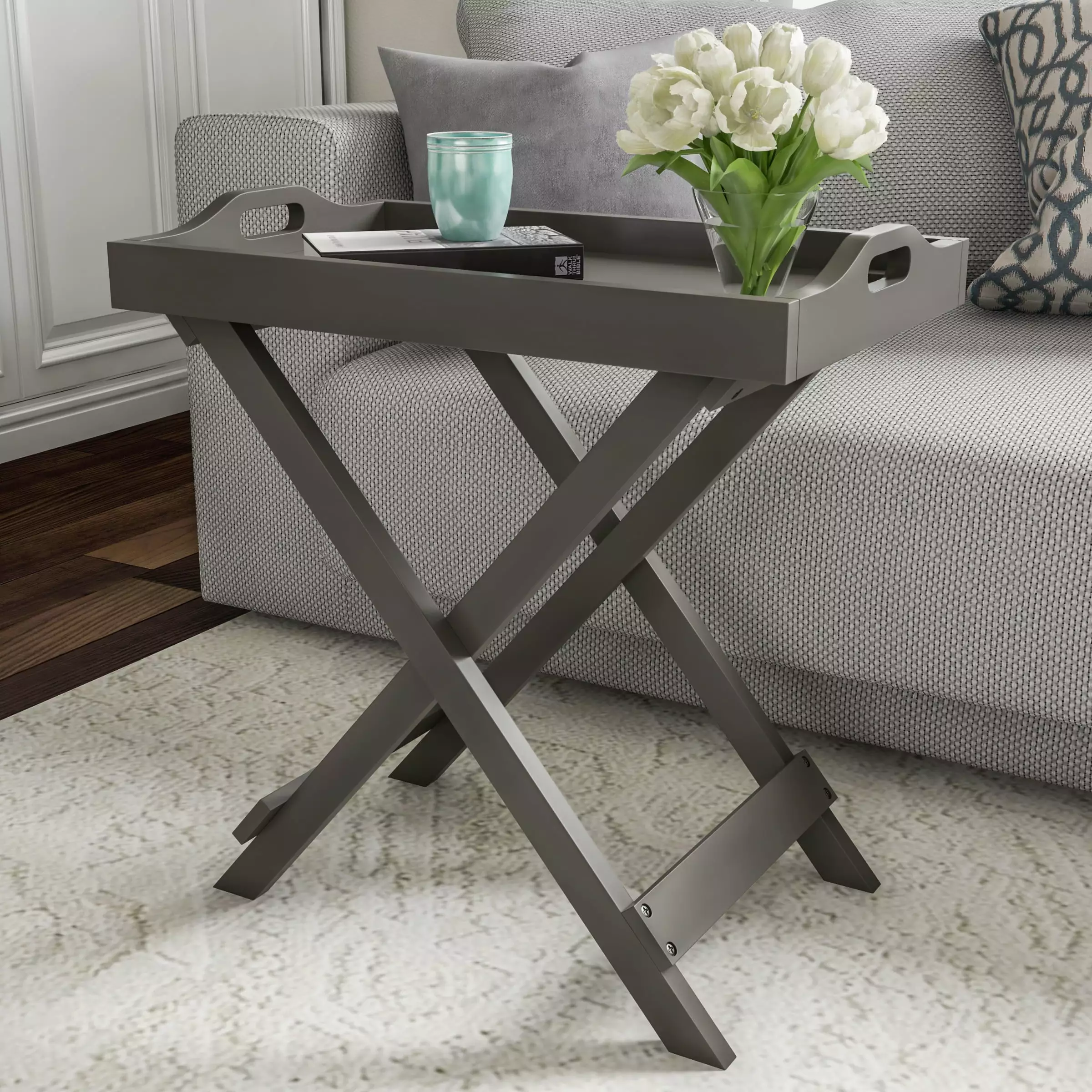 Lavish Home 23-inch Portable Folding End Table with Removable Tray Top (Gray)