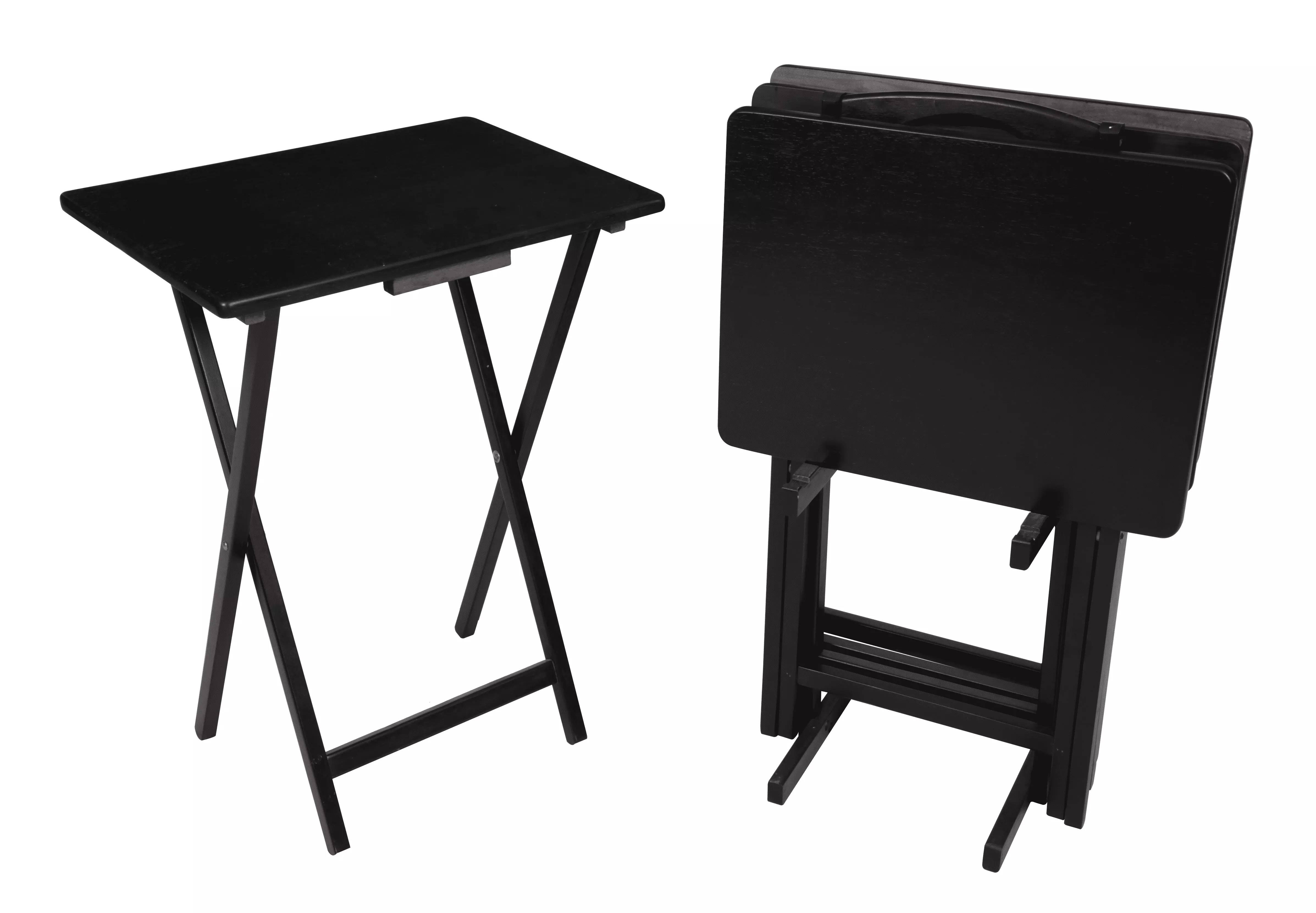 Mainstays Indoor Folding Table Set of 4 in Black L19 x W15 x H26 inches. 4 Tables+1 Rack Stand.