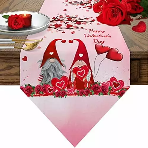 St Patty Days Gnome Table Runner-Cotton Linen-Long 36 Inches Dresser Scarves Farmhouse Table Runner for Wedding Dining End Table Decor Lucky St Patrick's Day Theme Clover Green Woode