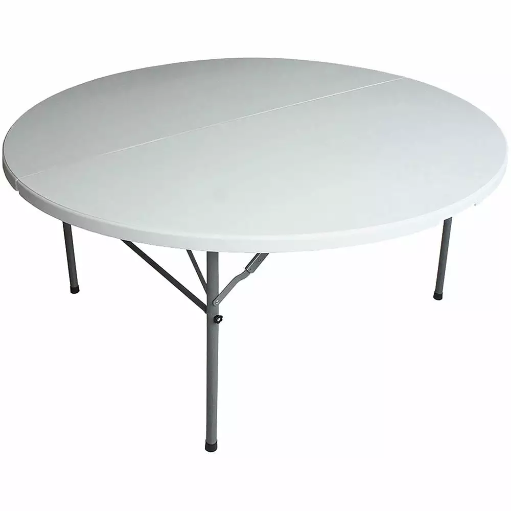 Plastic Development Group 5 Foot Fold In Half Round Folding Banquet Table. White