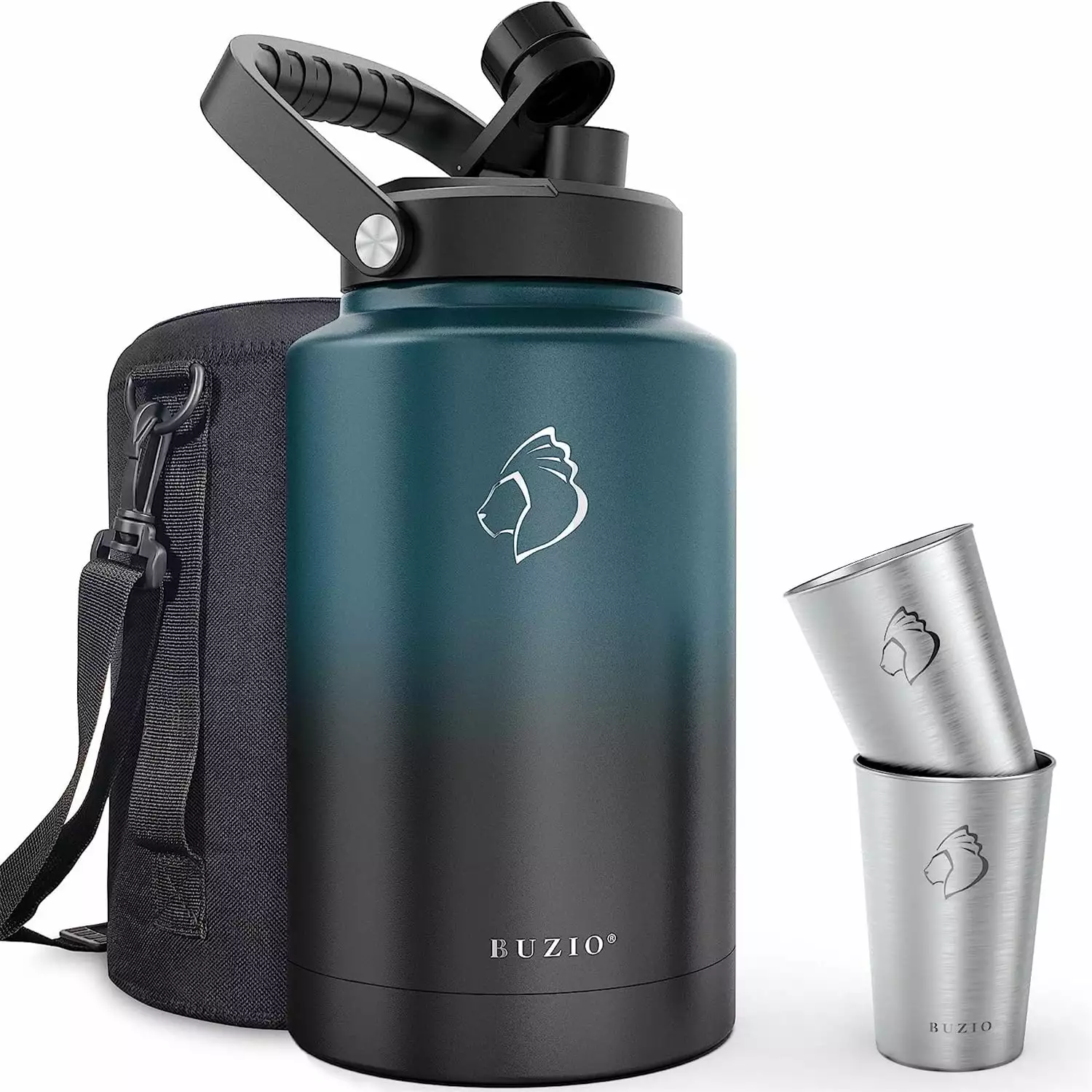 Buzio 1 Gallon Water Bottle Double Vacuum Insulated Water Jug Keep Cold and Hot. with Carrying Pouch and 2 Cups. Indigo Crush