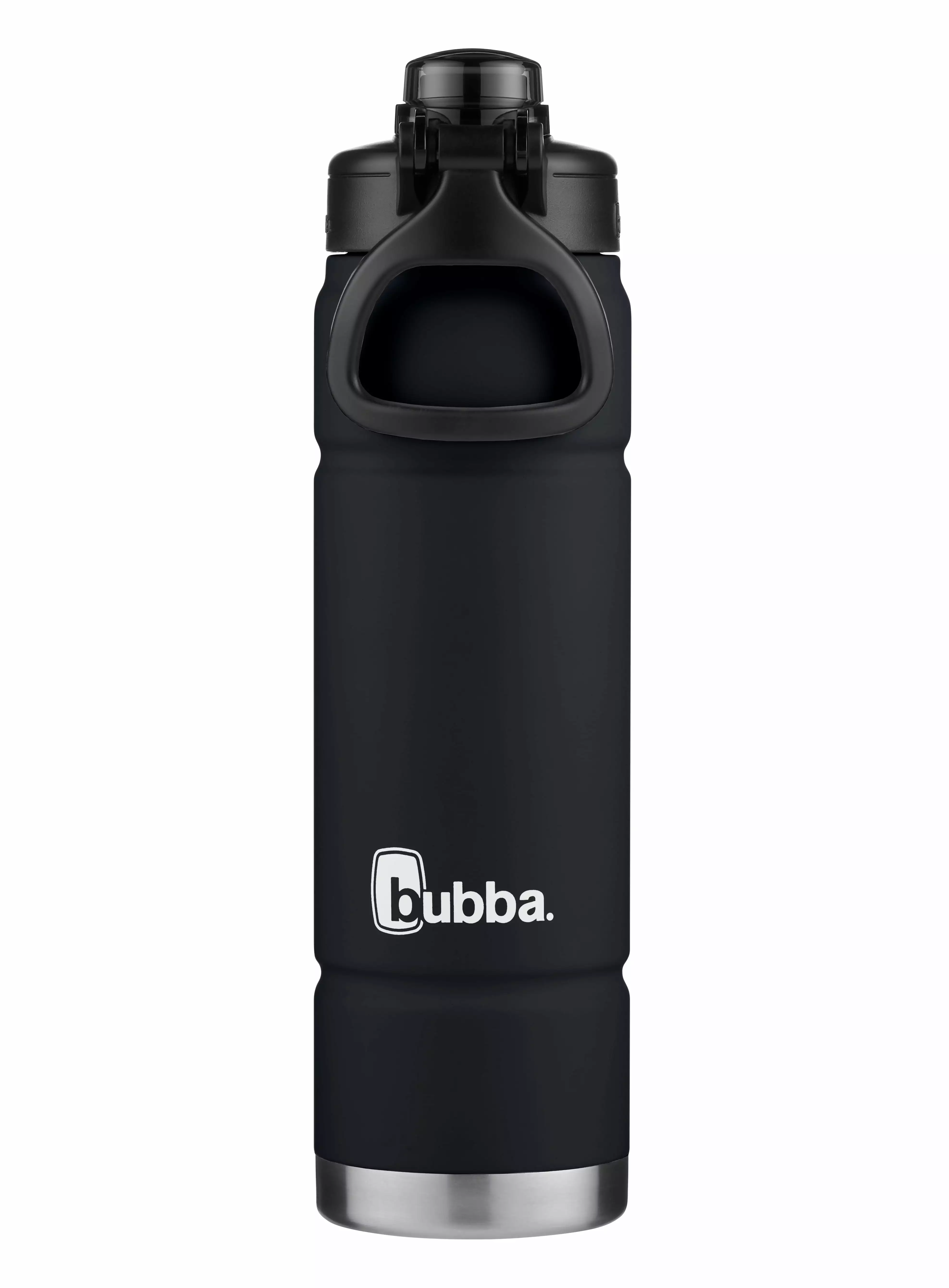 bubba Trailblazer Stainless Steel Water Bottle Push Button Lid Rubberized Black. 24 fl oz.