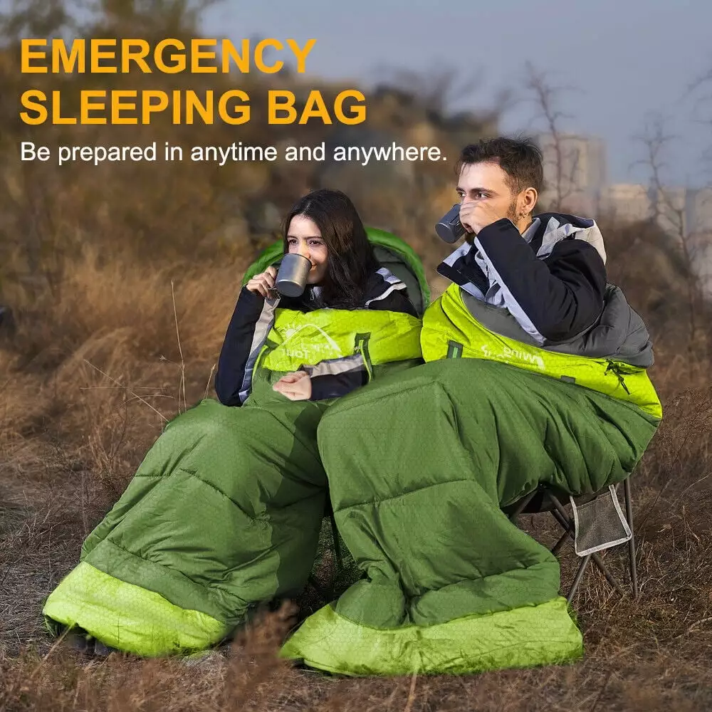 INNOVATIVE WEARABLE SLEEPING BAG not only release your hands and feet. but also combines left-zip and right-zip sleeping bag together to a double sleeping bag. Making your journey more convenient and warmer!