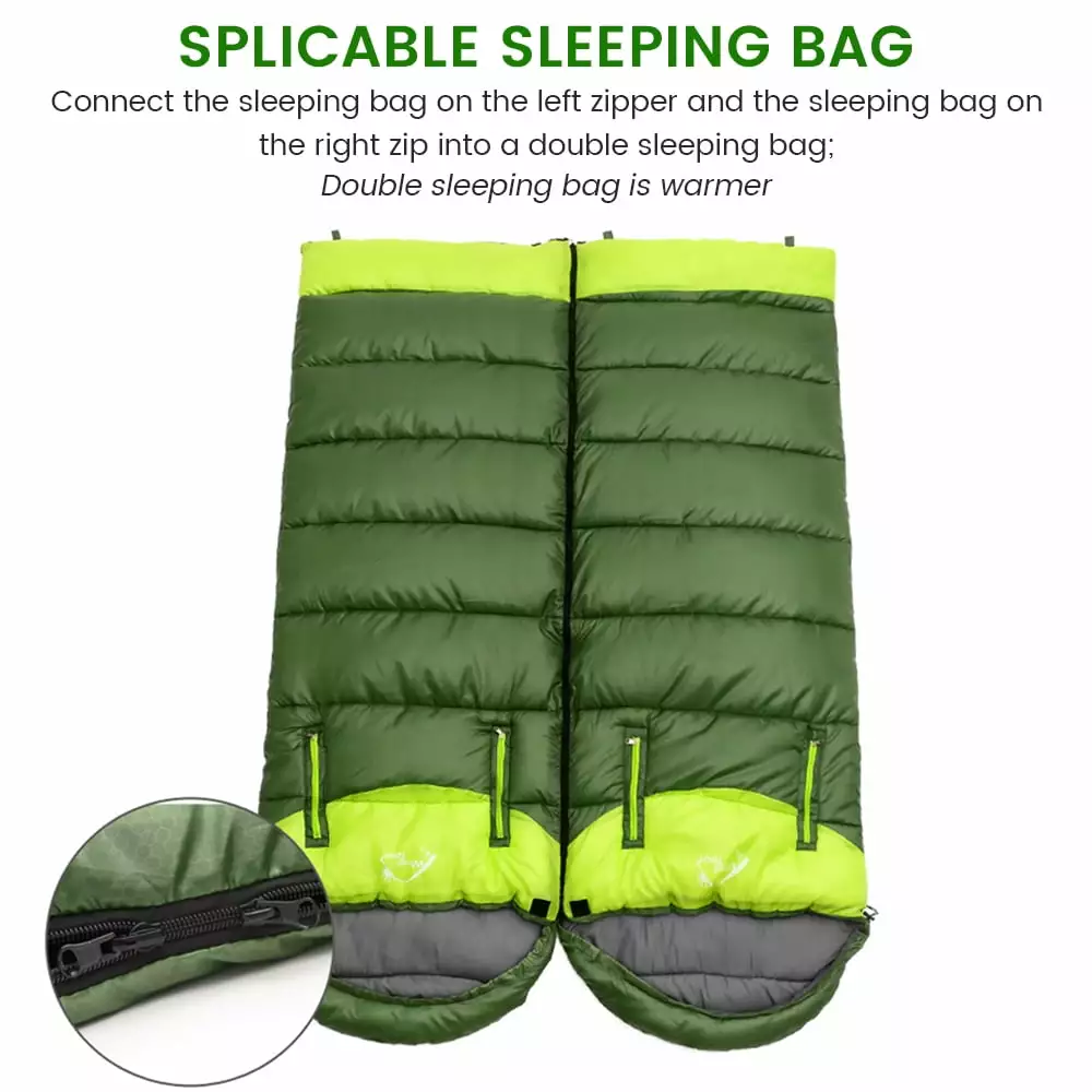 2. NEW 2 IN 1 DESIGN. Combining Left-zip and Right-zip Sleeping bag together.you can make a double sleeping bag. which is great for two people camping together. and it’s warmer.