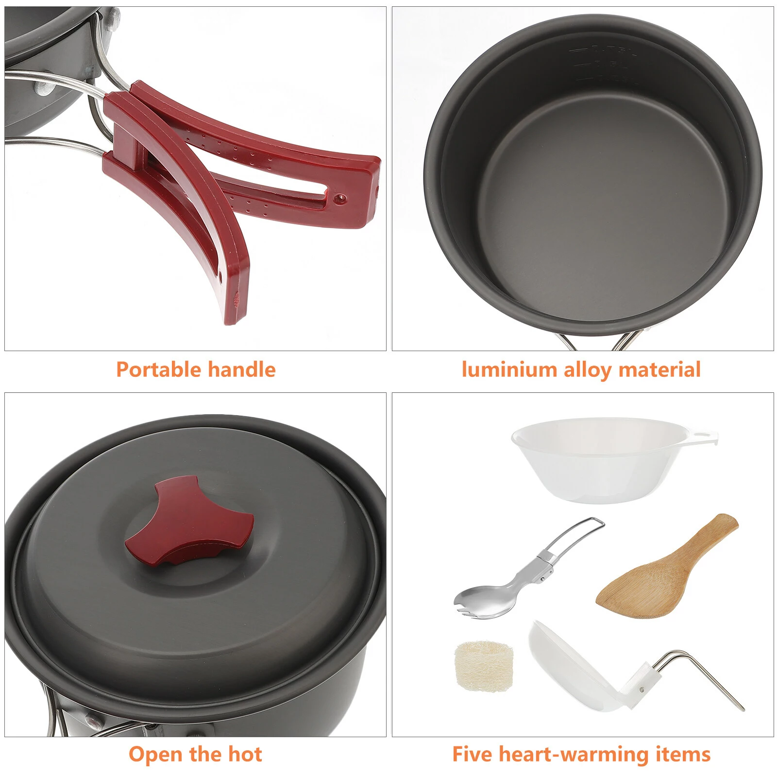 1 Set Aluminum Camping Cooker Picnic Bowl Pot Pan Set for 1 to 2 People