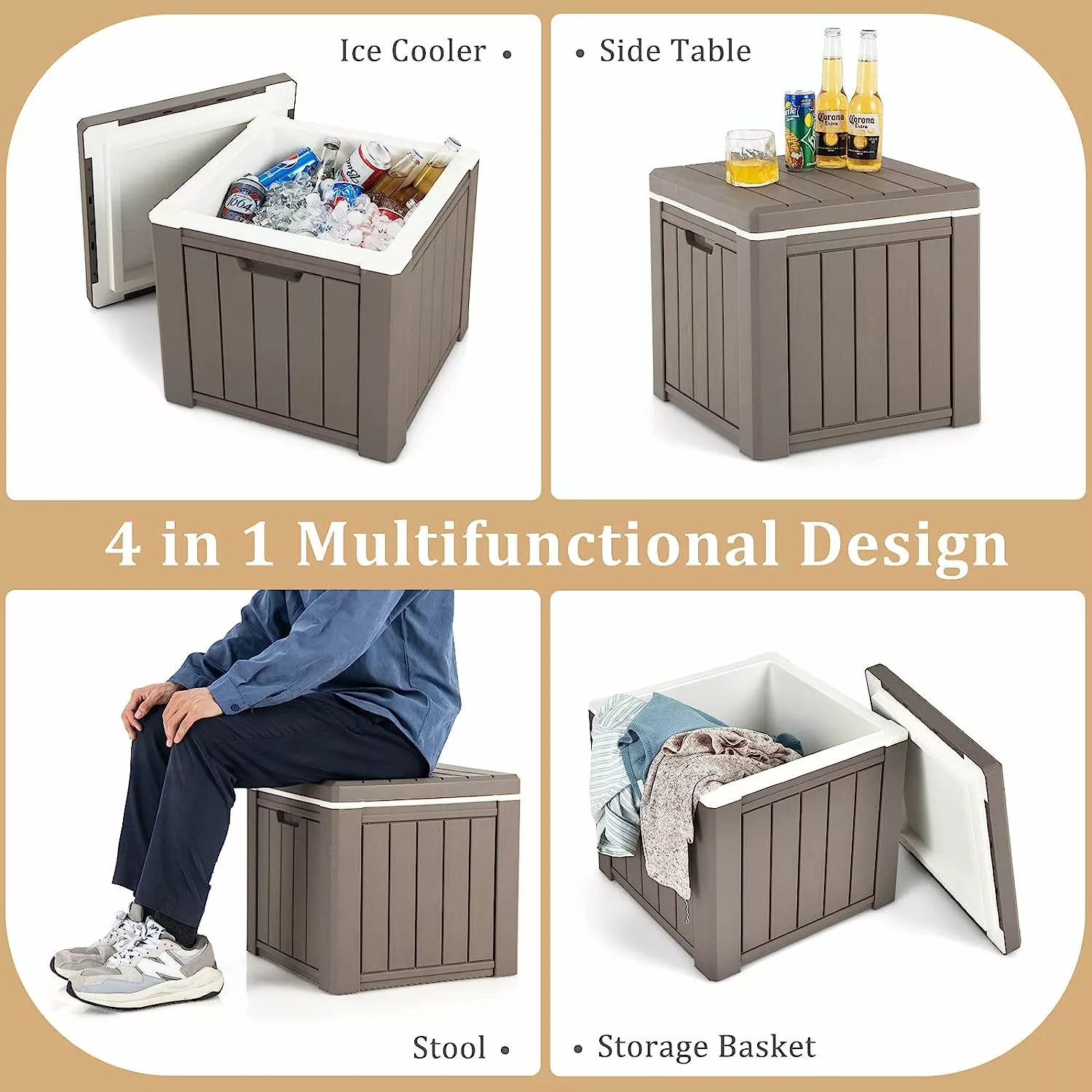 4-in-1 Multipurpose Cooler: In addition to being used as a ice cooler. it can serve as a cocktail side table as well. which is rather convenient for you to put drinks and mobile phone on the detachable lid. Besides. with a strong weight capacity of 220 lbs. you can also treat it as a stool when in need.