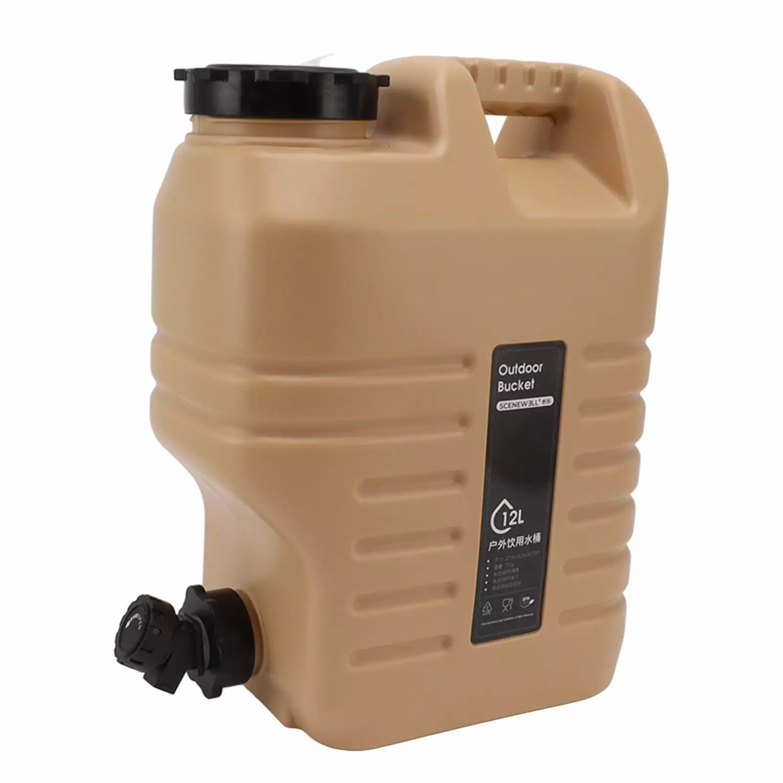 12L Storage Bucket Outdoor Camping Water Container with Outlet Valve and Sealing Cover