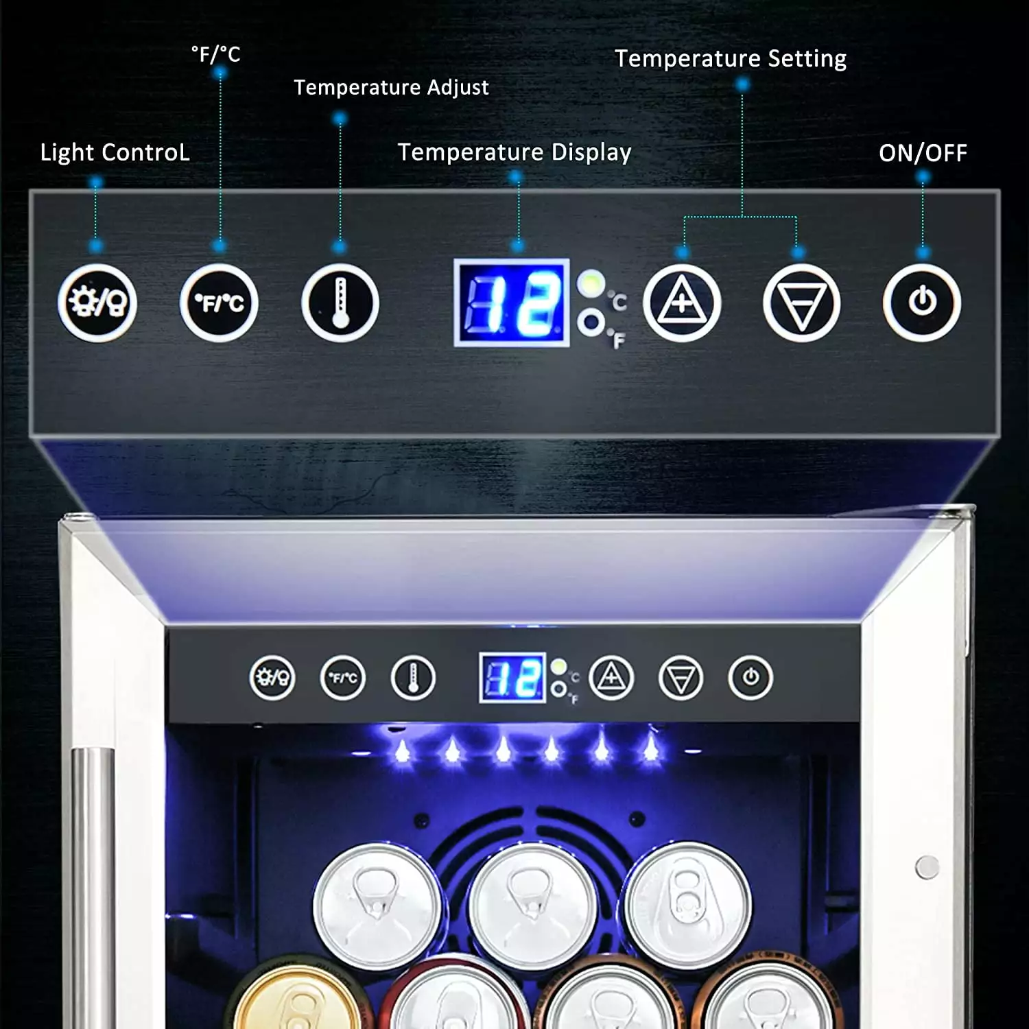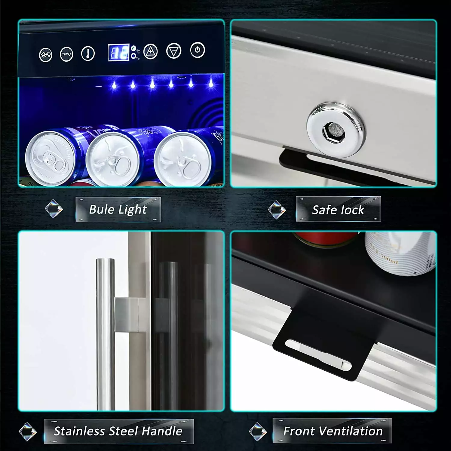 - Digital LED display & advanced design — The digital LED display is easy to read and use. Interior LED light help you selection of your favorite drink at all times. This refrigerator with automatic defrosting function. The advanced low-vibration compressor and air circulation system can quickly cool down and keep the noise effect less than 42dB. You can customize the temperature between 3-18??C (34-65??F).