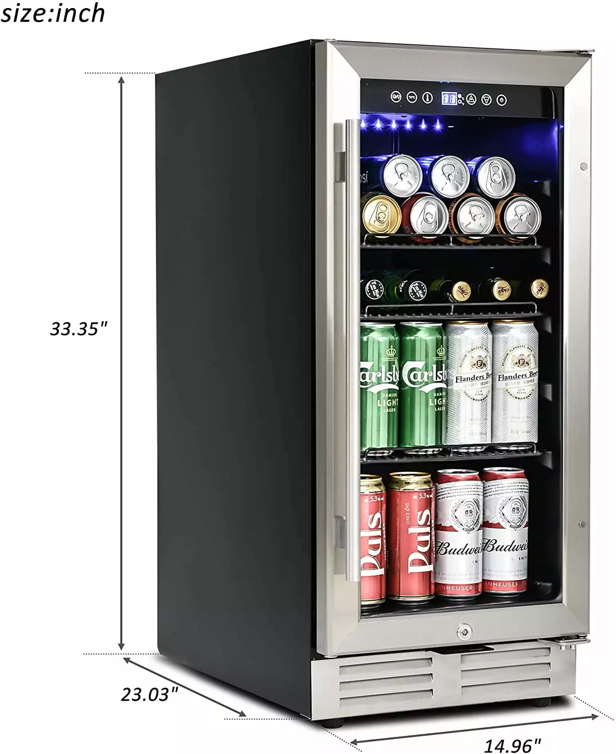 - Two usage methods — The15-inch mini refrigerator can be installed as built-in or freestanding as required. It can be installed under a counter in kitchen or bar area. or used as a freestanding unit. And it can also be used as a wine cooler. with a front cooling system. You can enjoy an ice-cold drink in anywhere.