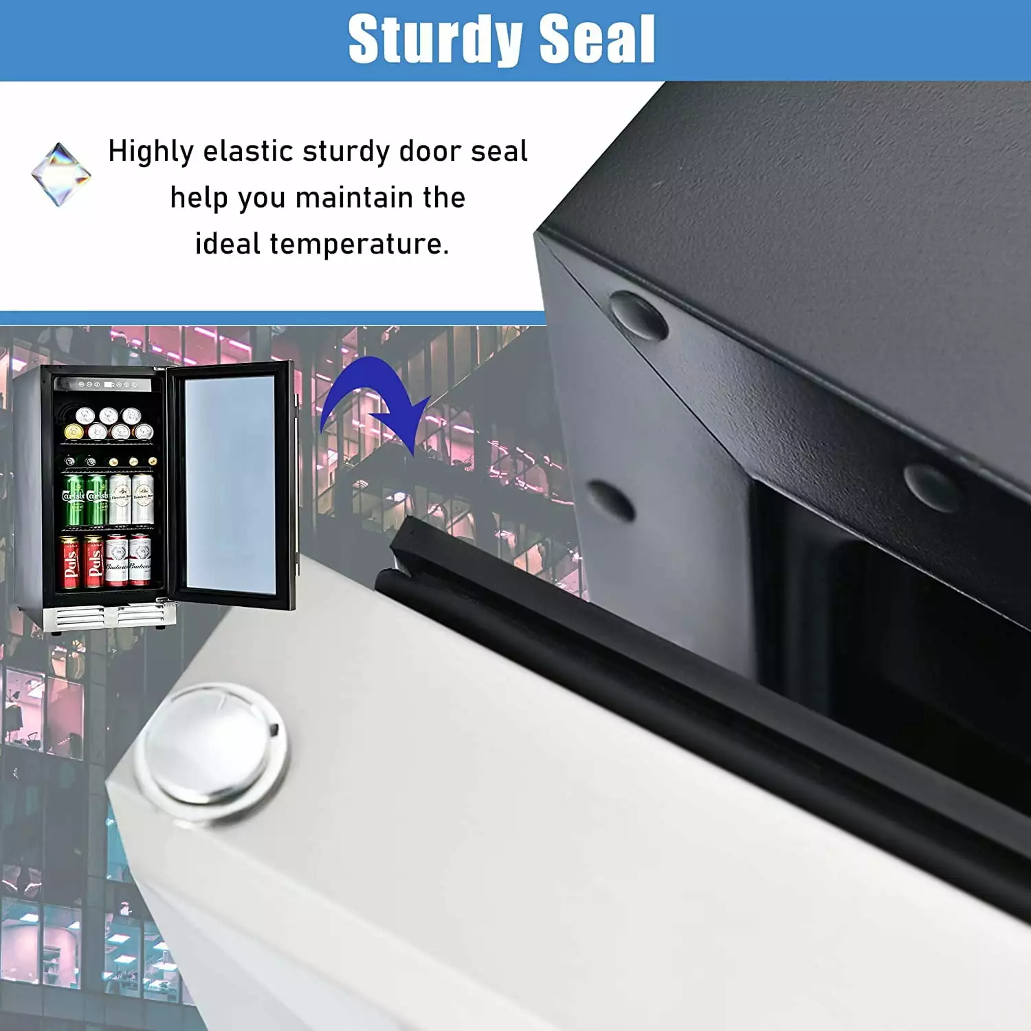 - Durable material & stylish appearance — A stainless steel framed door with double tempered glass can stably maintain the internal temperature and prevent the glass from fogging. The door can be assembled left or right. And the door will automatically lock when you close-soft-close door features with magnetic seals.