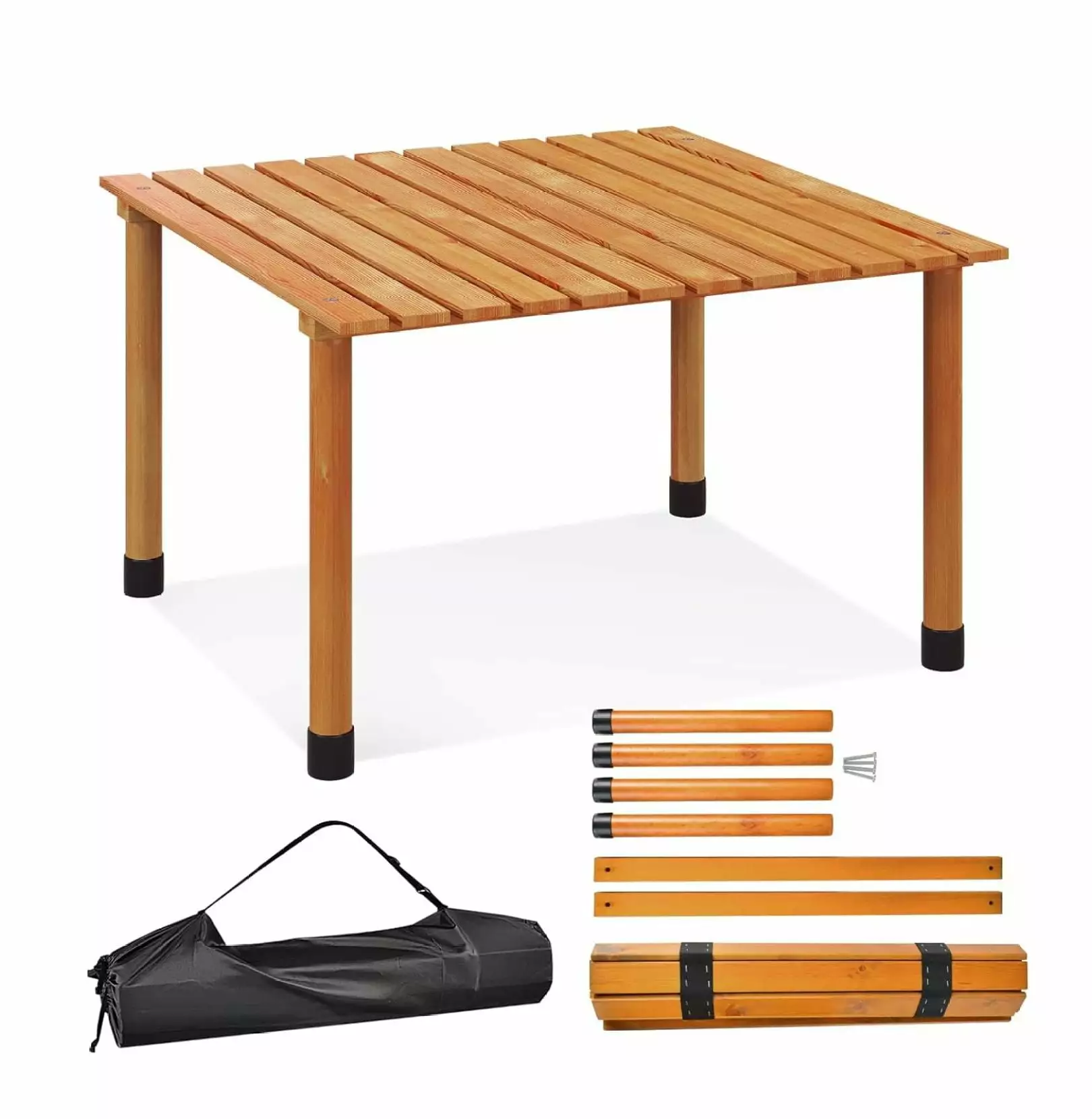 - ??Durable and Strong??–Powder-coated steel round tubing legs with bracing design for extra strength and stability. Thanks to the honeycomb design. the pressure applied to the table top is dispersed. making the 2.6 ft round camp picnic table exhibit excellent load carrying capacity of up to 242 pounds. In addition.the non-marring foot caps are designed to not only protect your floor from scratches. but also eliminate the risk of slipping