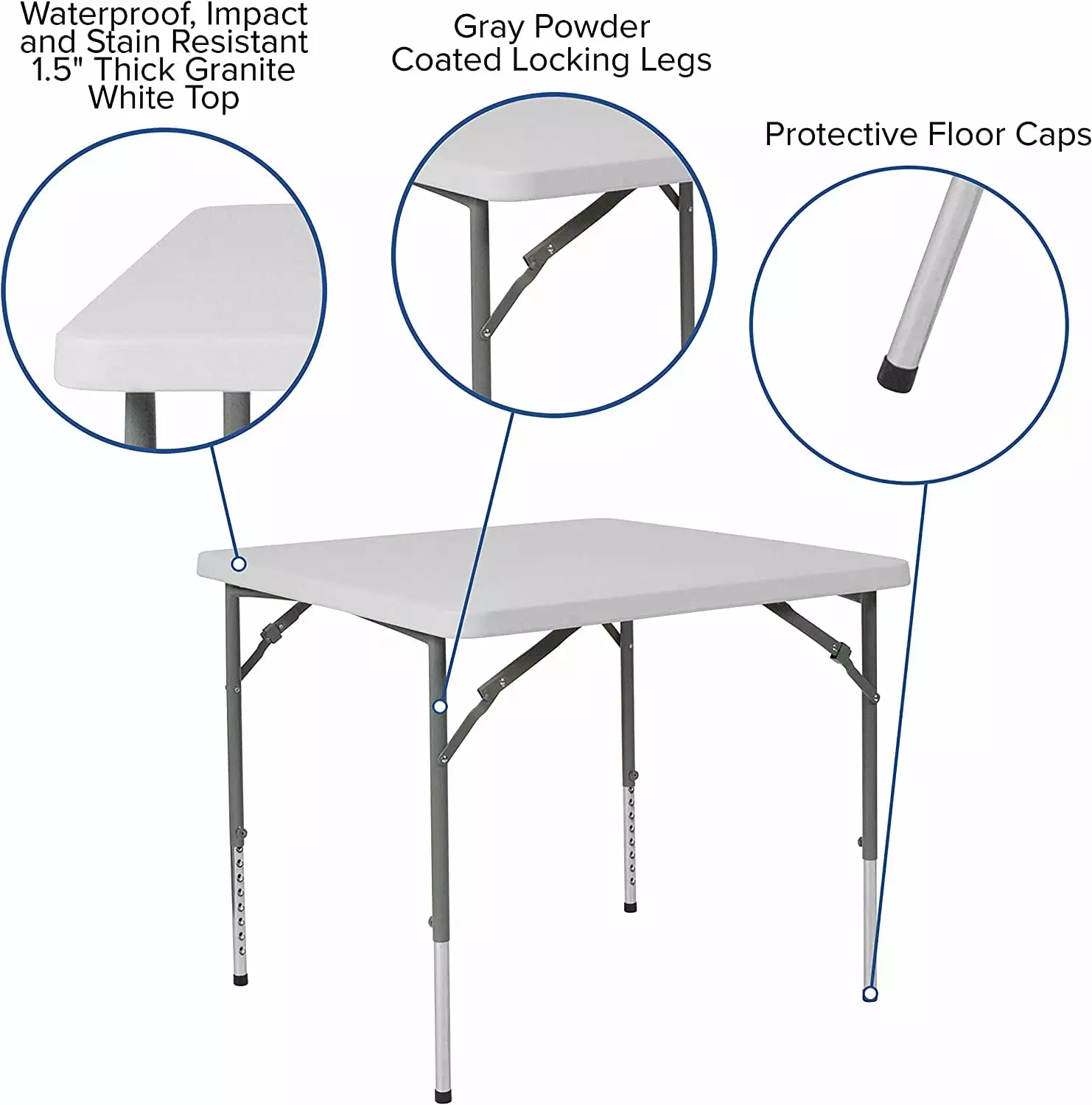 2.79-Foot Square Height Adjustable Granite White Plastic Folding Table
