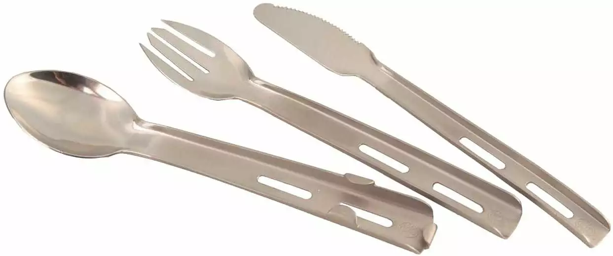 Titanium construction for great durability and use. spoon and fork two in one for convenient use and space saving storage. Great for dailyuse or outdoor camping. hiking and picnic.