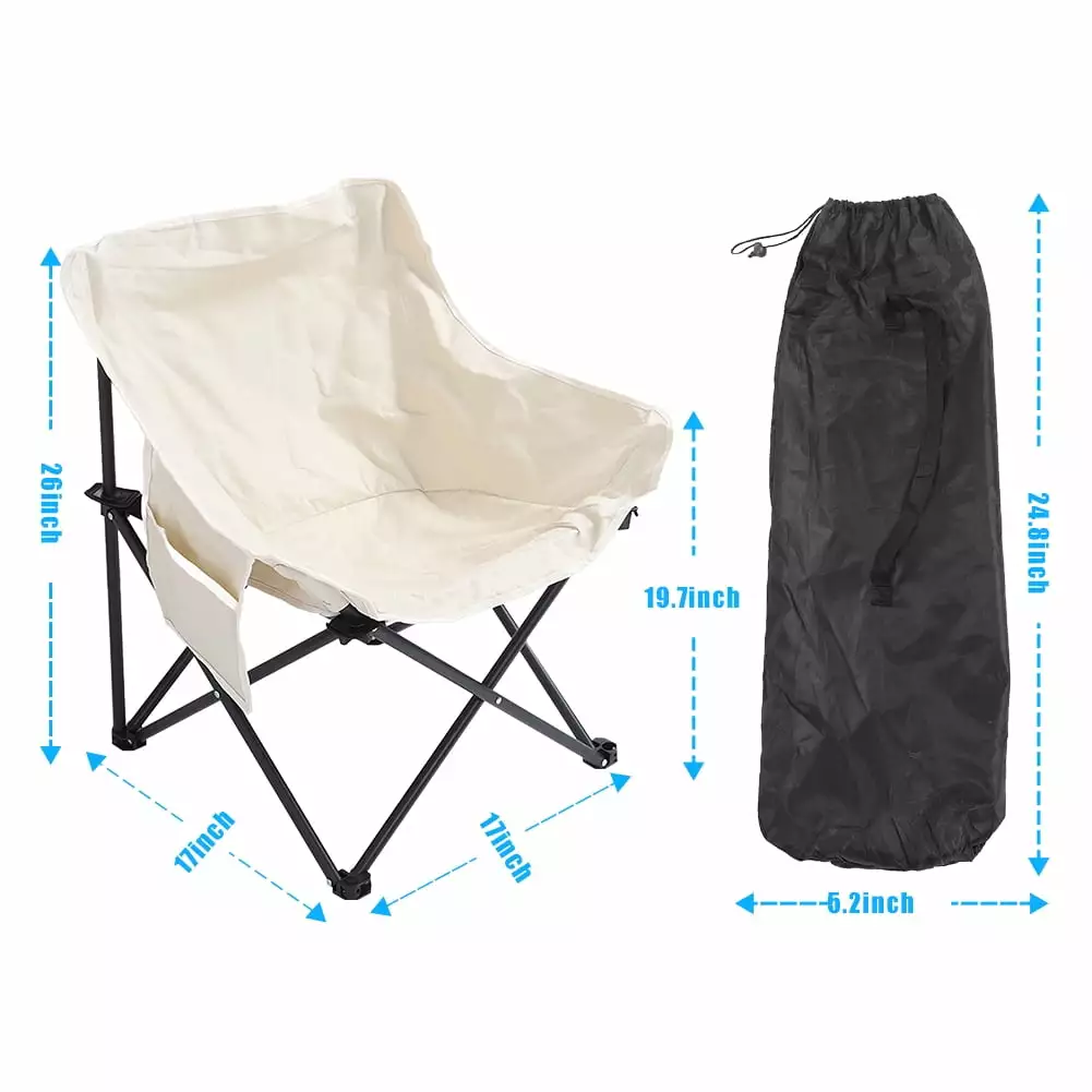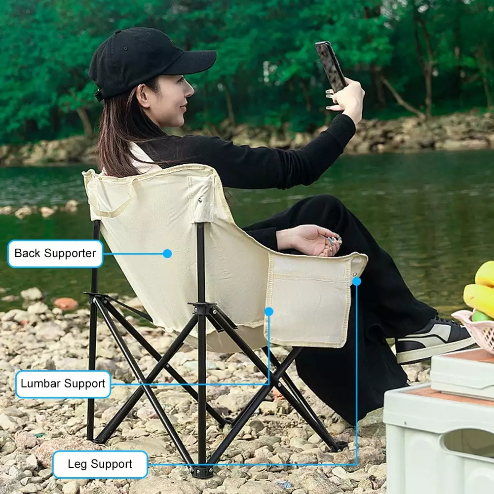 - 1. PORTABLE DESIGN: This camping chair features a portable design that quickly folds into a compact size. with a storage bag for easy carrying and storage.