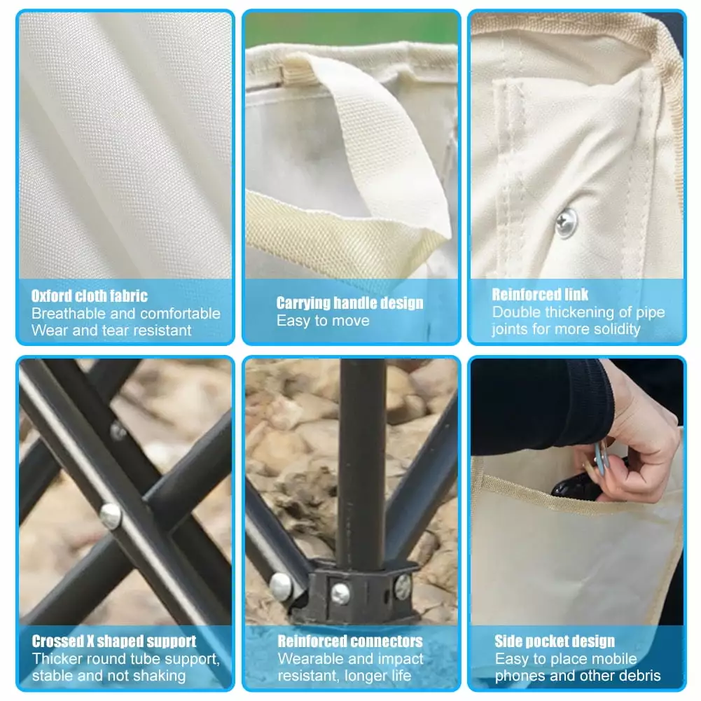 - 5. PREMIUM MATERIALS: Camp chair is made of premium Oxford cloth and iron materials. durable and waterproof. can withstand the wind. rain and sun exposure in outdoor environment.