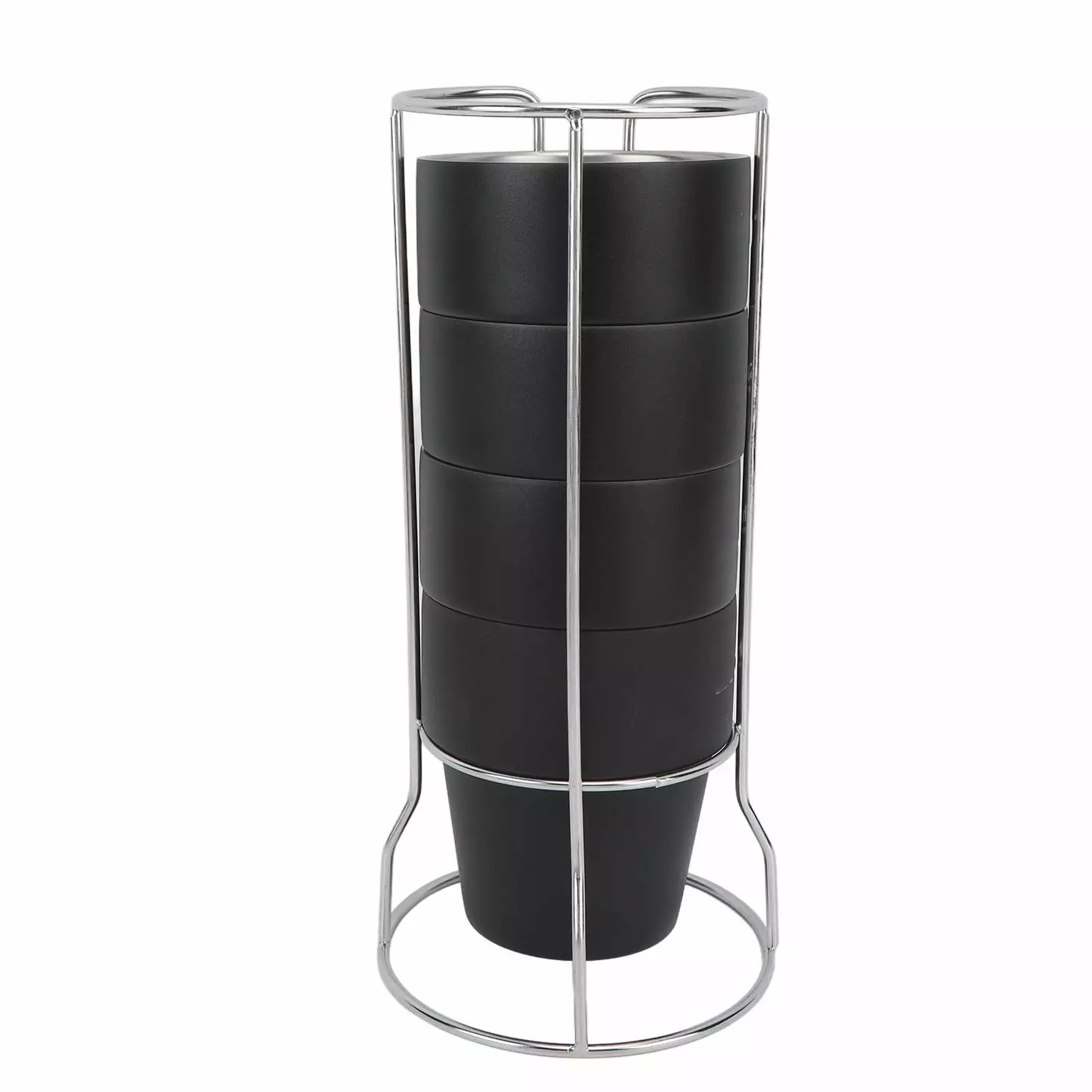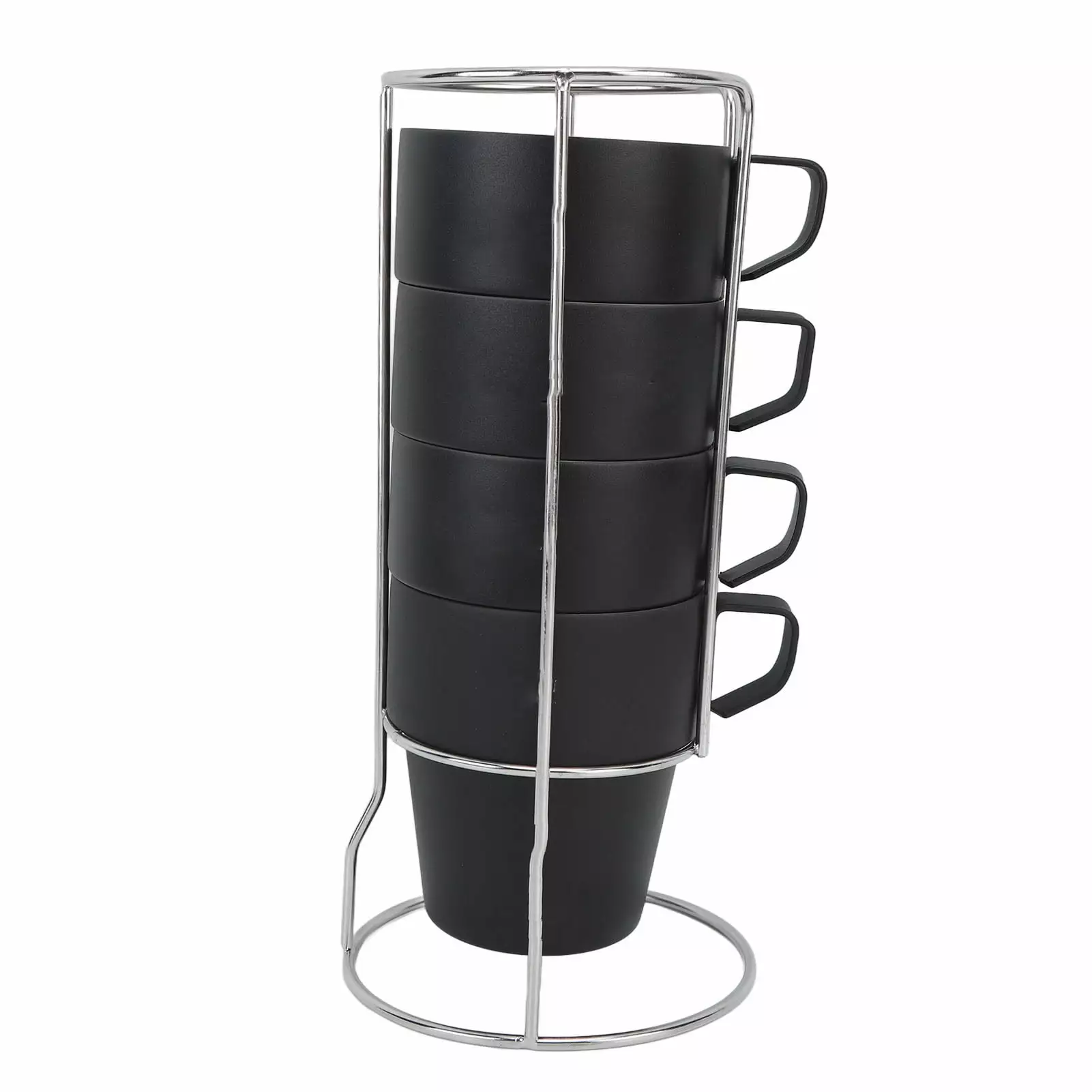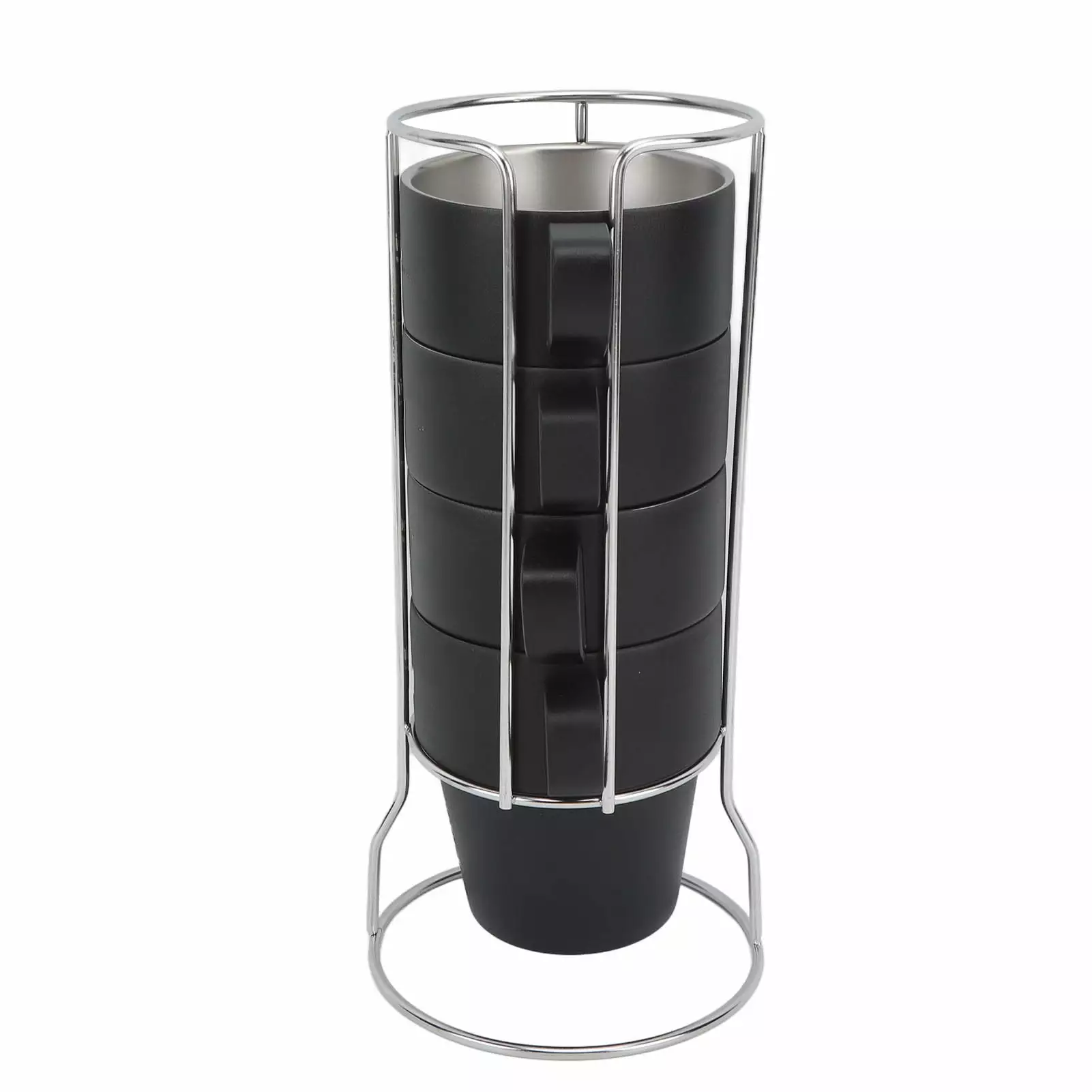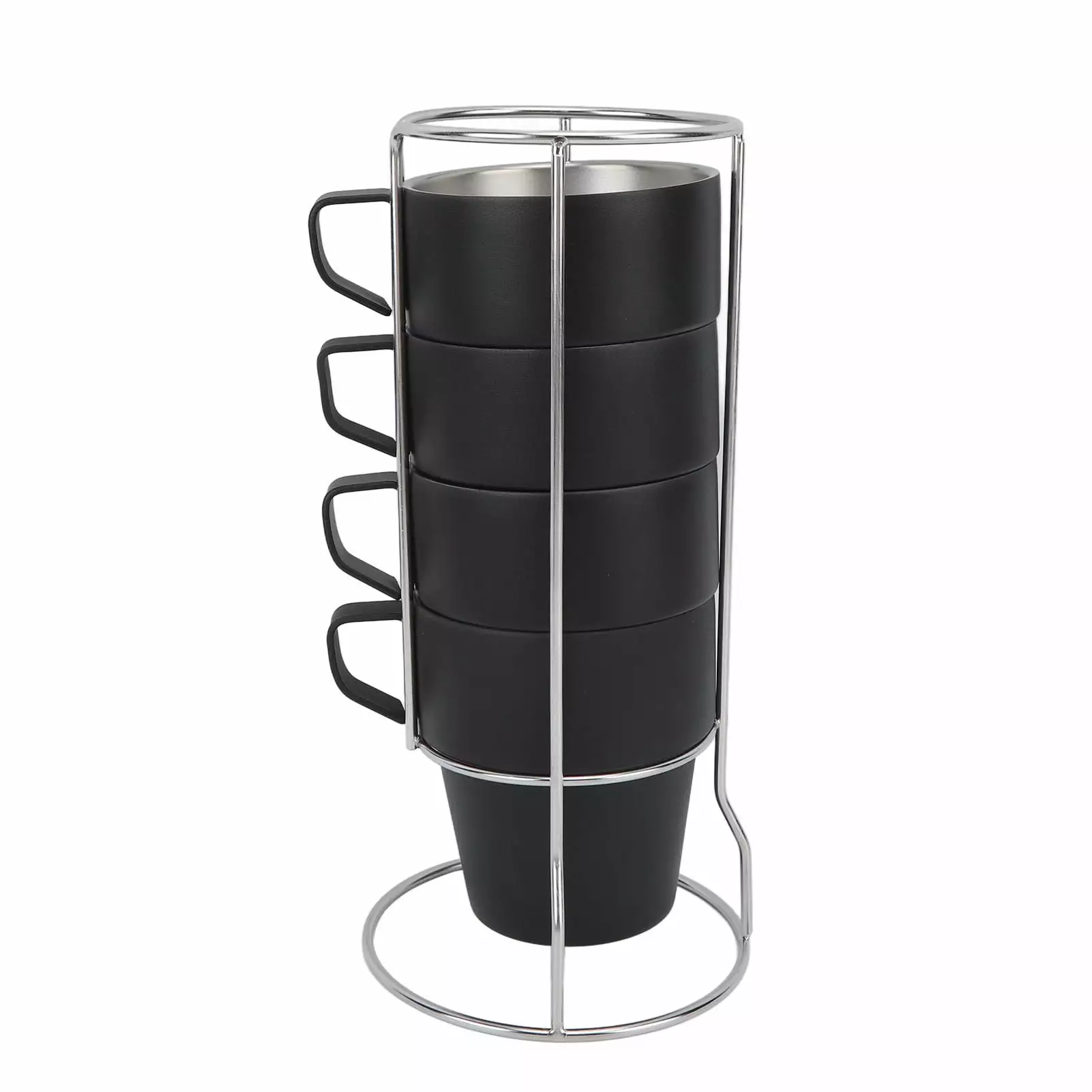 2024 Coffee Cups Set Black Stackable Stainless Steel Double Layer Insulated Easy to Clean with Metal Stand for Camping