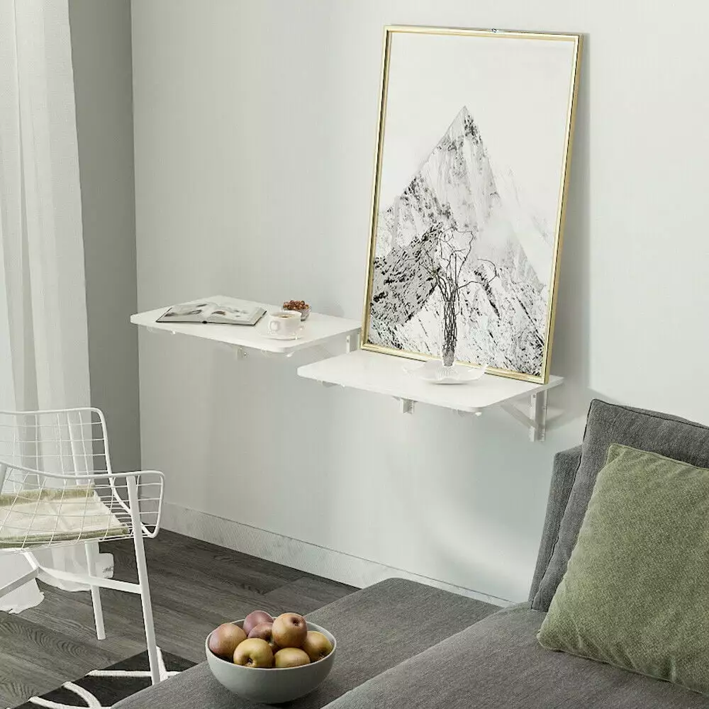 23*15in White Wall-Mounted Drop-Leaf Table. Folding Kitchen & Dining Table Desk. Home Office Table Desk Workstation. Computer Desk. Trestle Desk