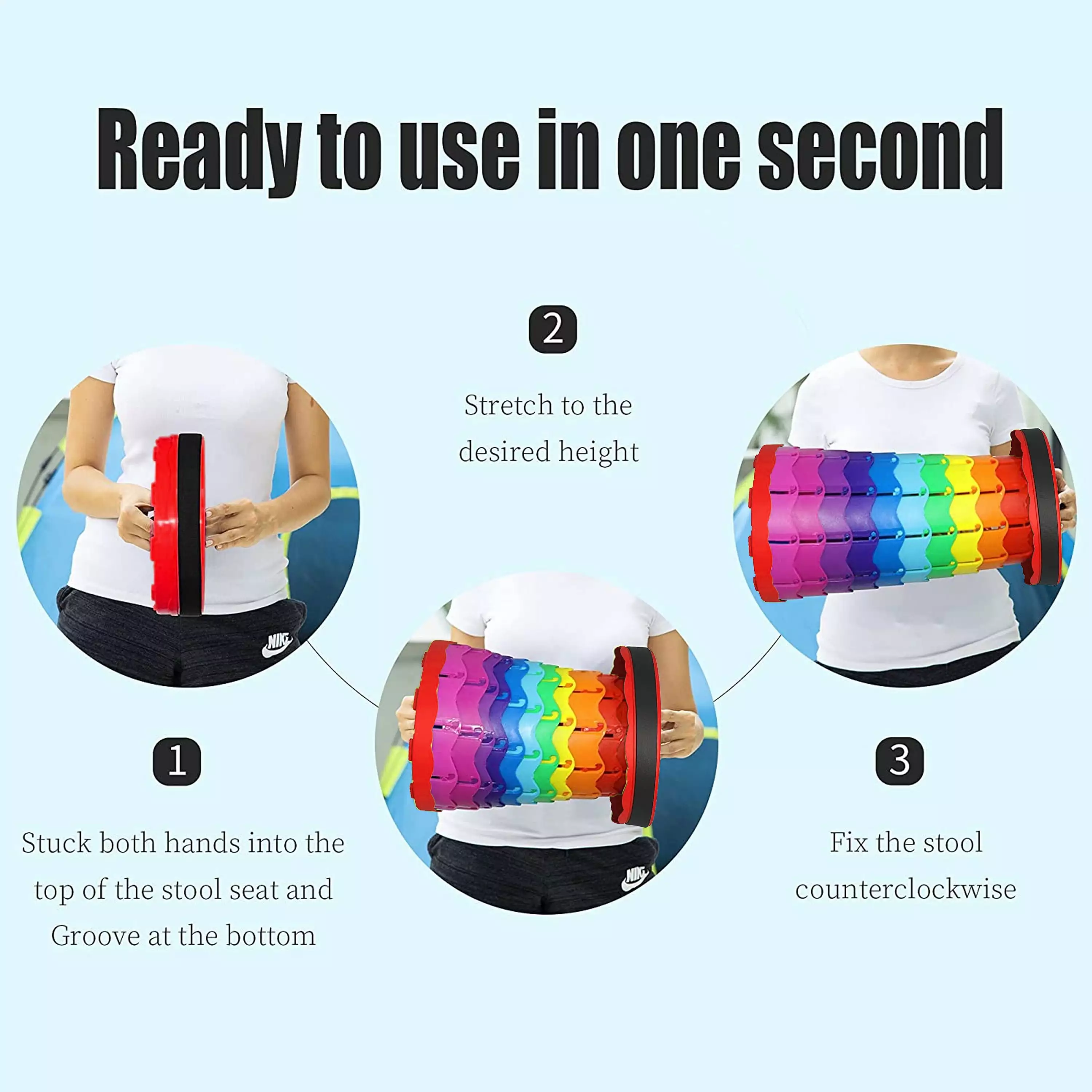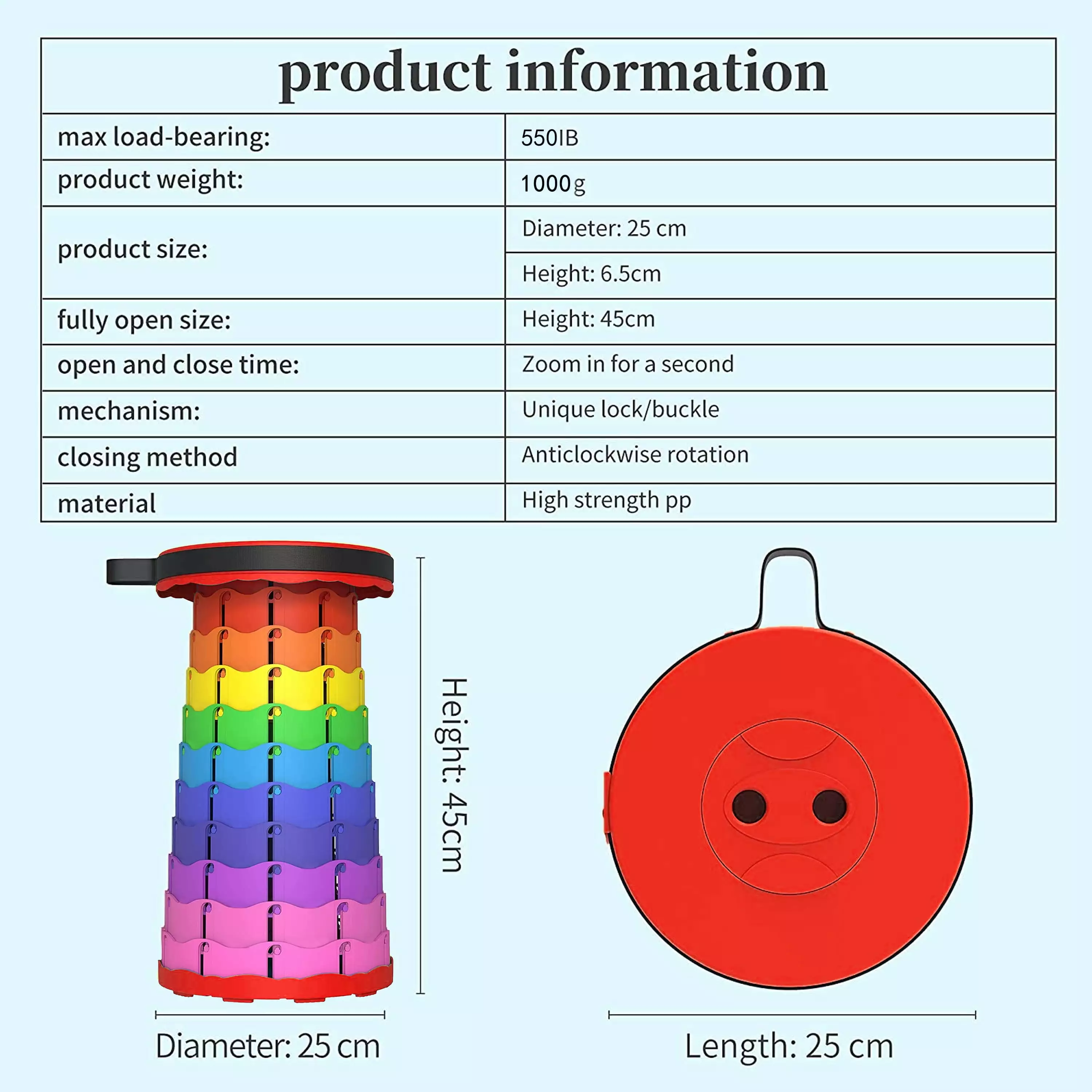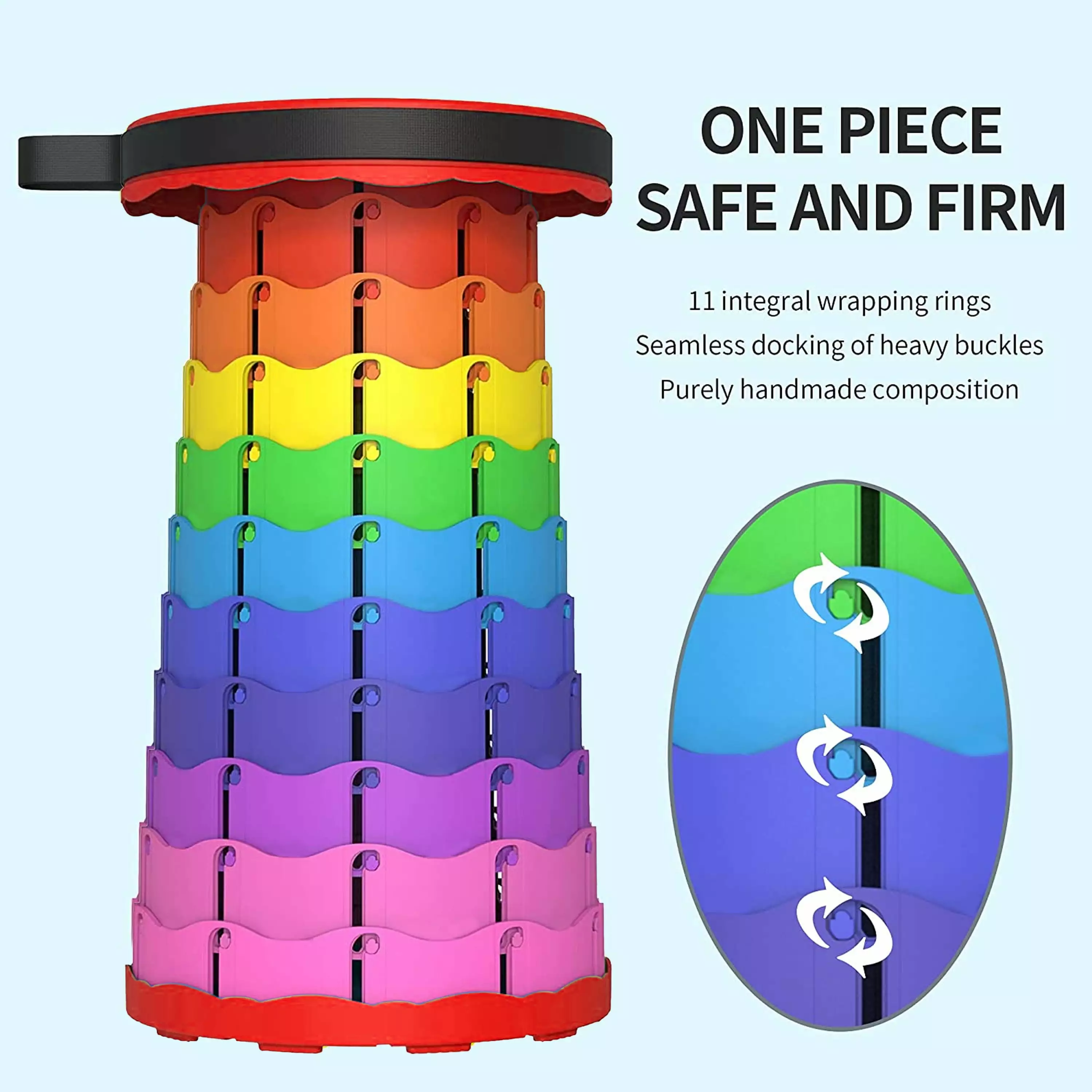 2Pcs Folding Camping Stool. Portable Collapsible Retractable Telescopic Folding Stools Height Adjustable (Rainbow)