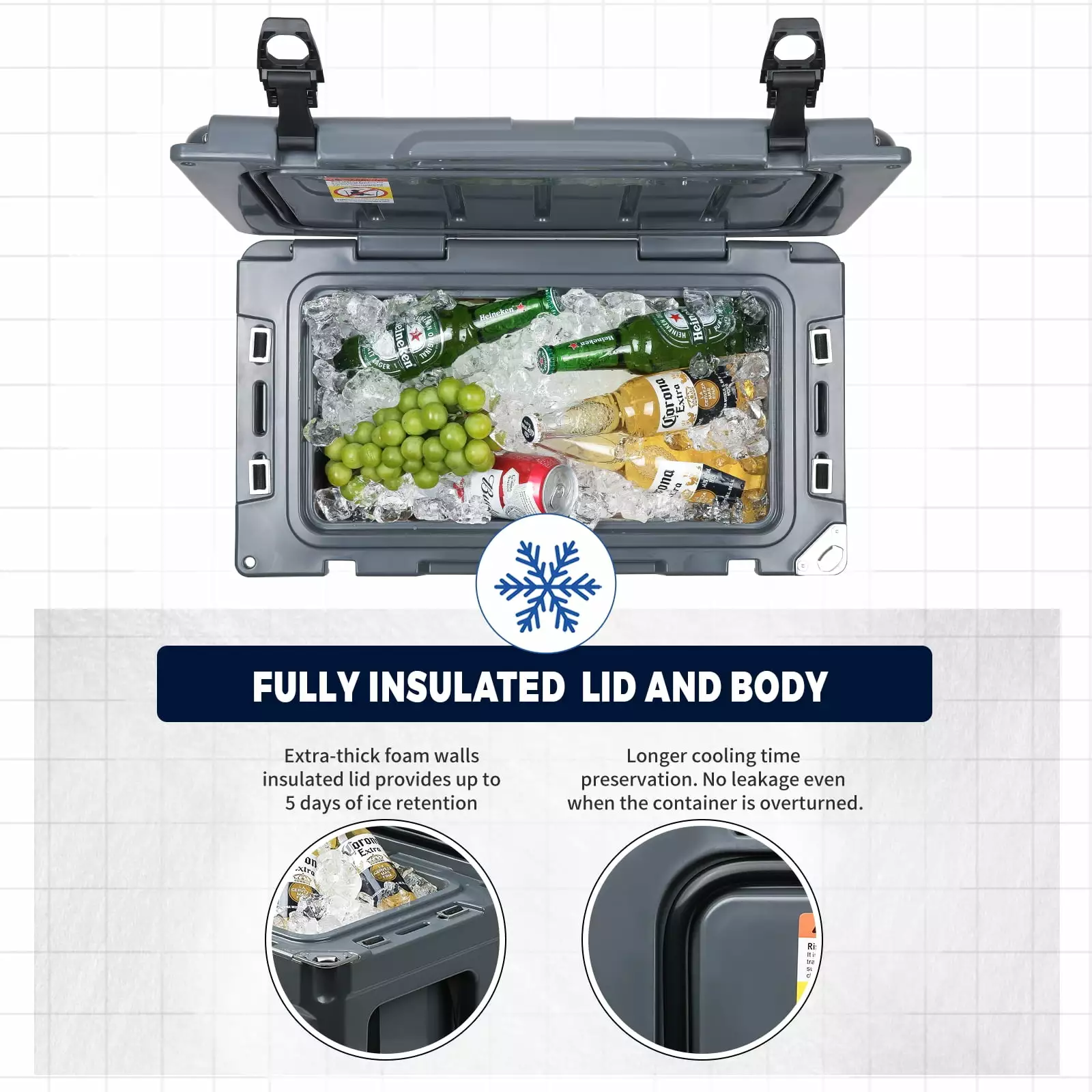 - STURDY ROTOMOLDED CONSTRUCTION: Solid rotary mold ice chests and coolers. with classic surface color and natural luster. use LLDPE material. which is safe & environmental-friendly. sturdy & anti-resistant. inside(food grade) and outside(UV resistance).
