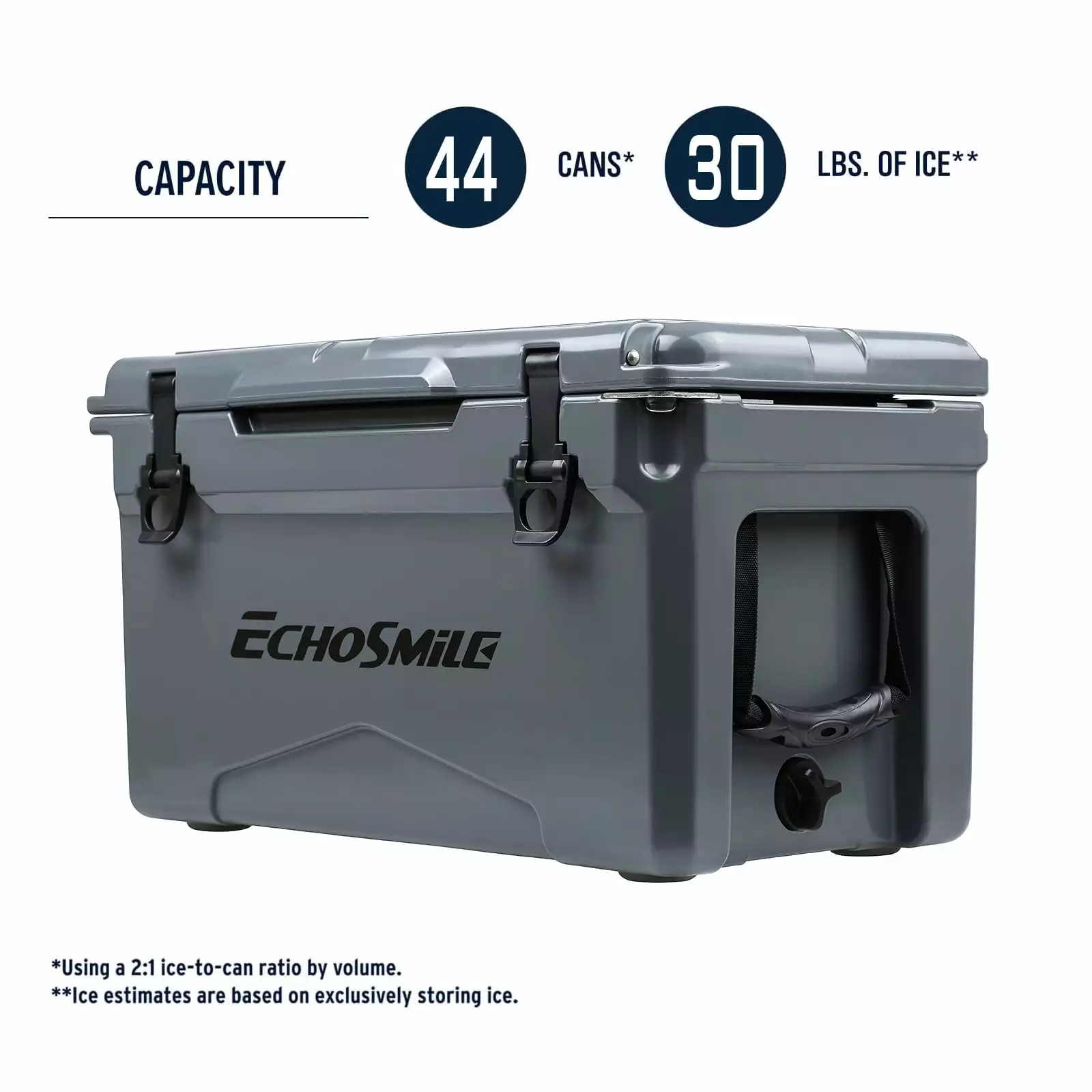 - ICE RETENTION: EchoSmile Rotomolded cooler keeps cold for up to 5 days with recommended 2:1 ice-to-contents. The intermediate insulation layer is made of polyurethane so as to provide superior insulative and high strength. The silicone sealing ring seals the whole space to avoid heat convection and prolong the cryopreservation time.
