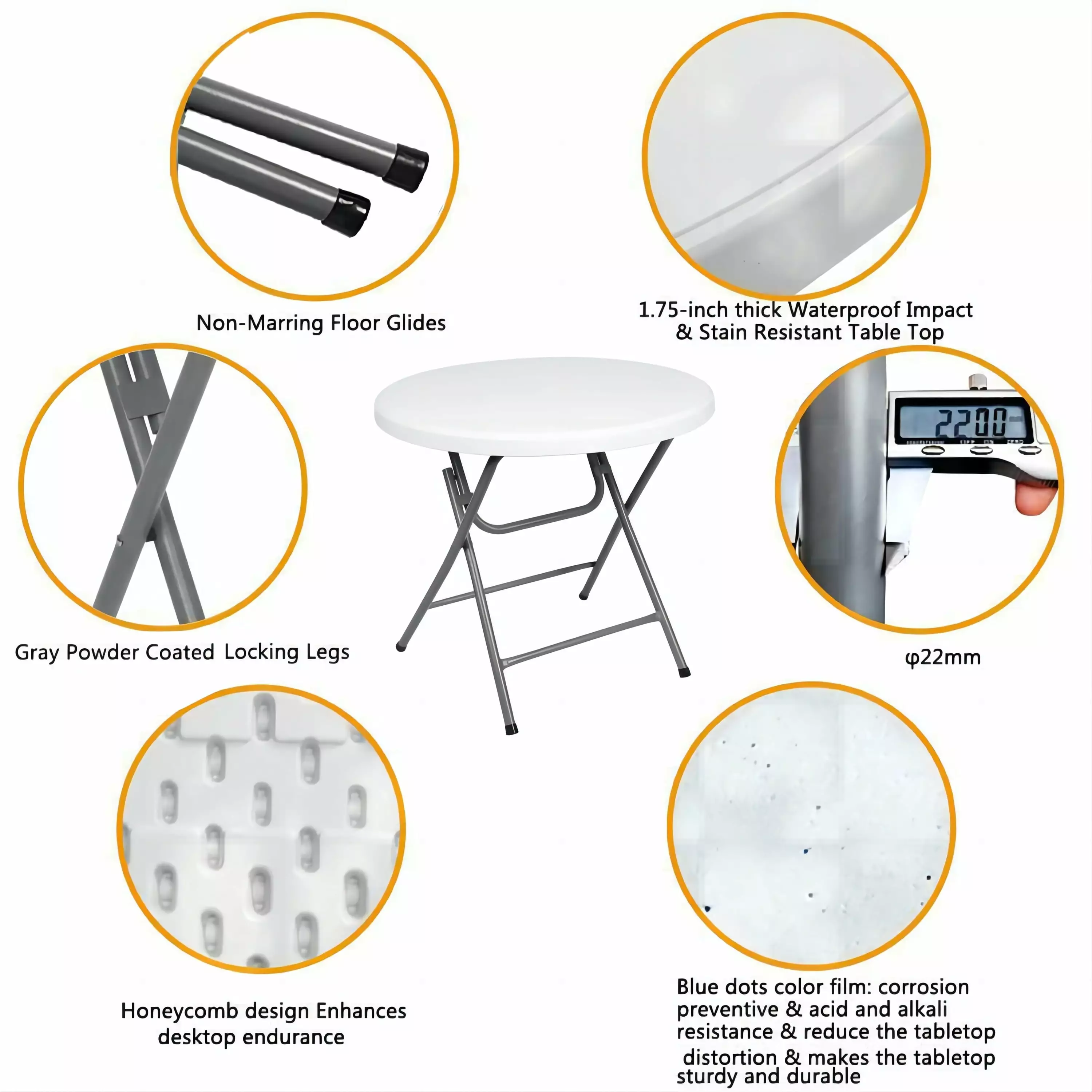 - Effortless Portability and Protection: Foldable gray powder-coated legs and smooth floor glides enhance mobility and floor safety. simplifying transport and storage.