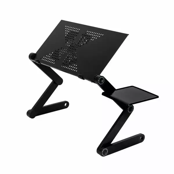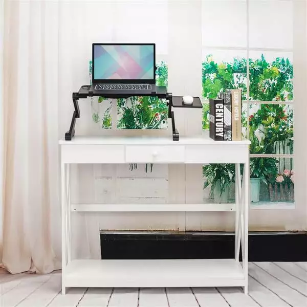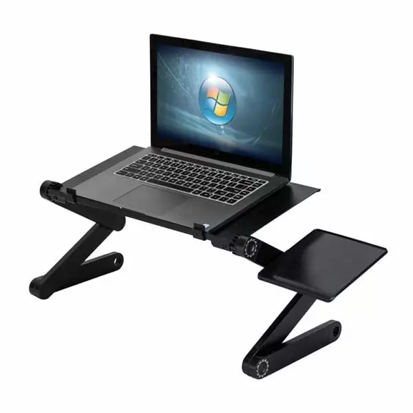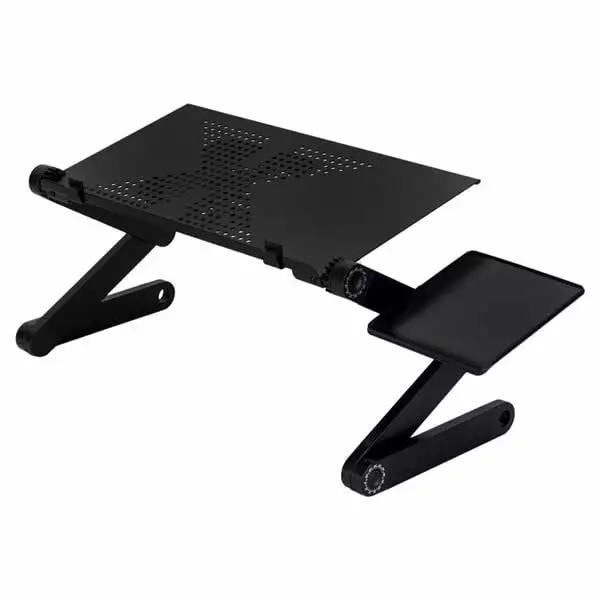 360-Degree Rotation Multifunctional Portable Folding Table with Fan & Mouse Black