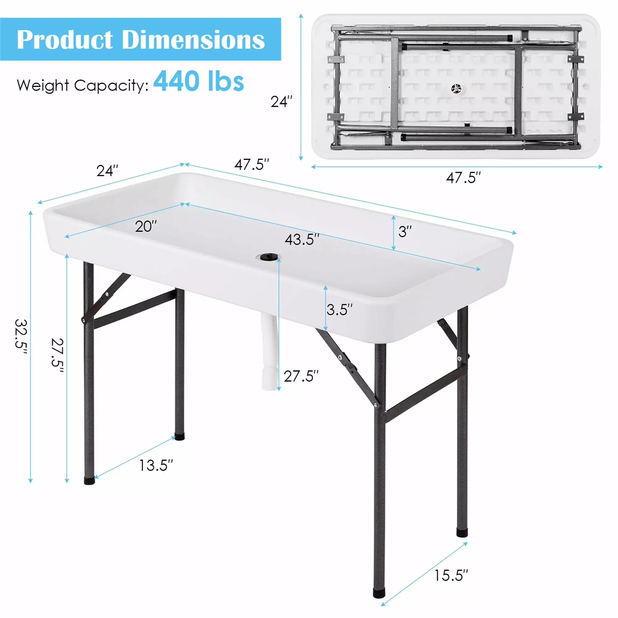 4 ft Ice Cooler Table Foldable Cold Food Keeper with Matching Skirt