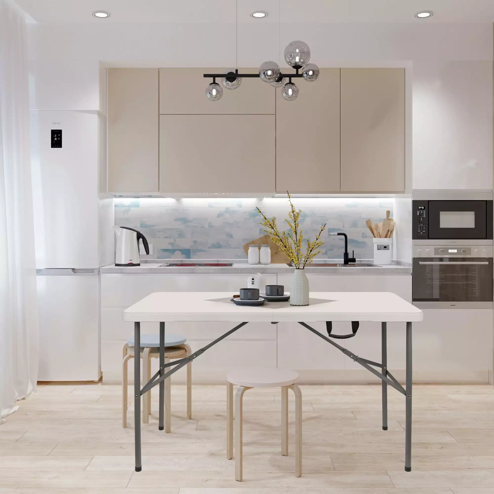 - QUICK AND SIMPLE: No installation required! Just four steps to unfold the table without any tools. Legs lock securely into place for stability during use. Maximum weight capacity 330 lbs.