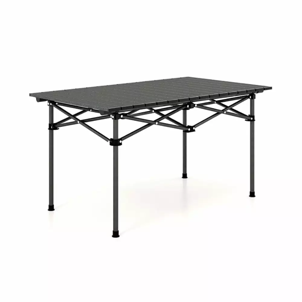 -Roomy space suitable to accommodate 4-6 people -16 aluminum slats are strong rustproof heat-proof and lightweight -X tubes strong buckles and connectors ensure a sturdy frame -Roll-up tabletop and folding frame for compact storage -Anti-slip foot pads prevent accidental sliding for stability -Oxford carry bag is included for easy portability -Perfect outdoor table for camping picnic hiking and more -Tool-free installation to save a lot of time and effort