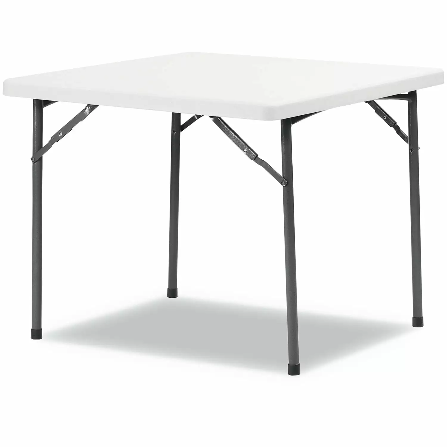 Tables. folding Alera? square plastic folding table. Tables are perfect for both indoors or outdoors. Convenient square folding tables are set up quickly when the extra table is needed and space is limited. Blow-molded polyethylene top is water and stain resistant; won’t crack or stain. Strong durable powder-coated metal construction withstands dents and scratches. Slide lock feature to ensure table stability once opened. Non-marring foot caps. Supports up to 600 lbs. (evenly distributed). This Alera square plastic folding table. 36 W x 36 D x 29 1/4 H. white is a great table.