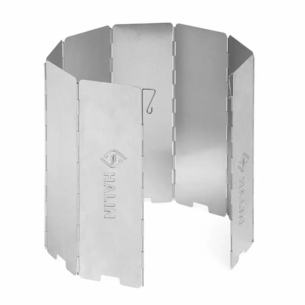Come with a windshield and a storage bag. 8-plate aluminum alloy folding windscreen with stainless steel pegs to secure into ground and stove from wind to save fuel and increase efficiency.