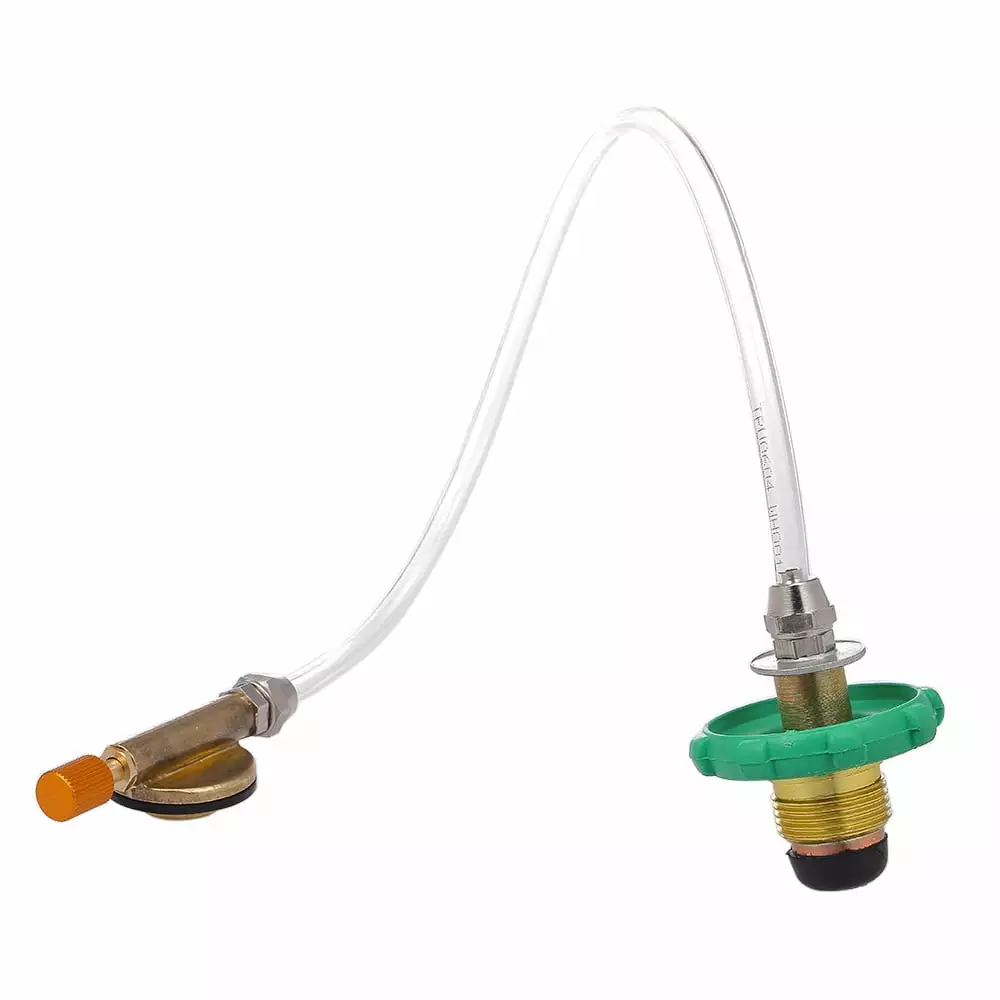 Use this adapter to refill your gas tank from liquefied gas cylinder. no need to buy extra flat tanks.