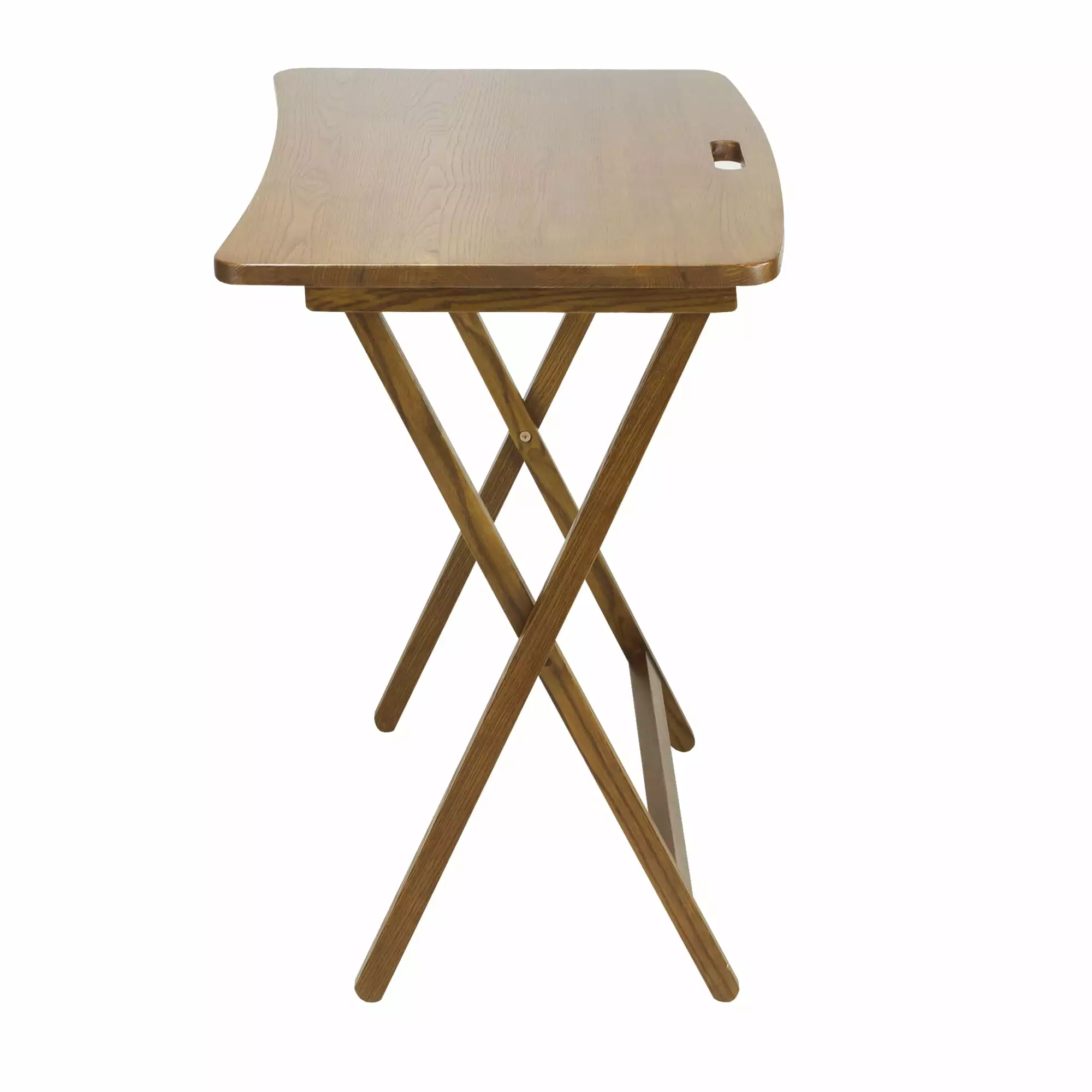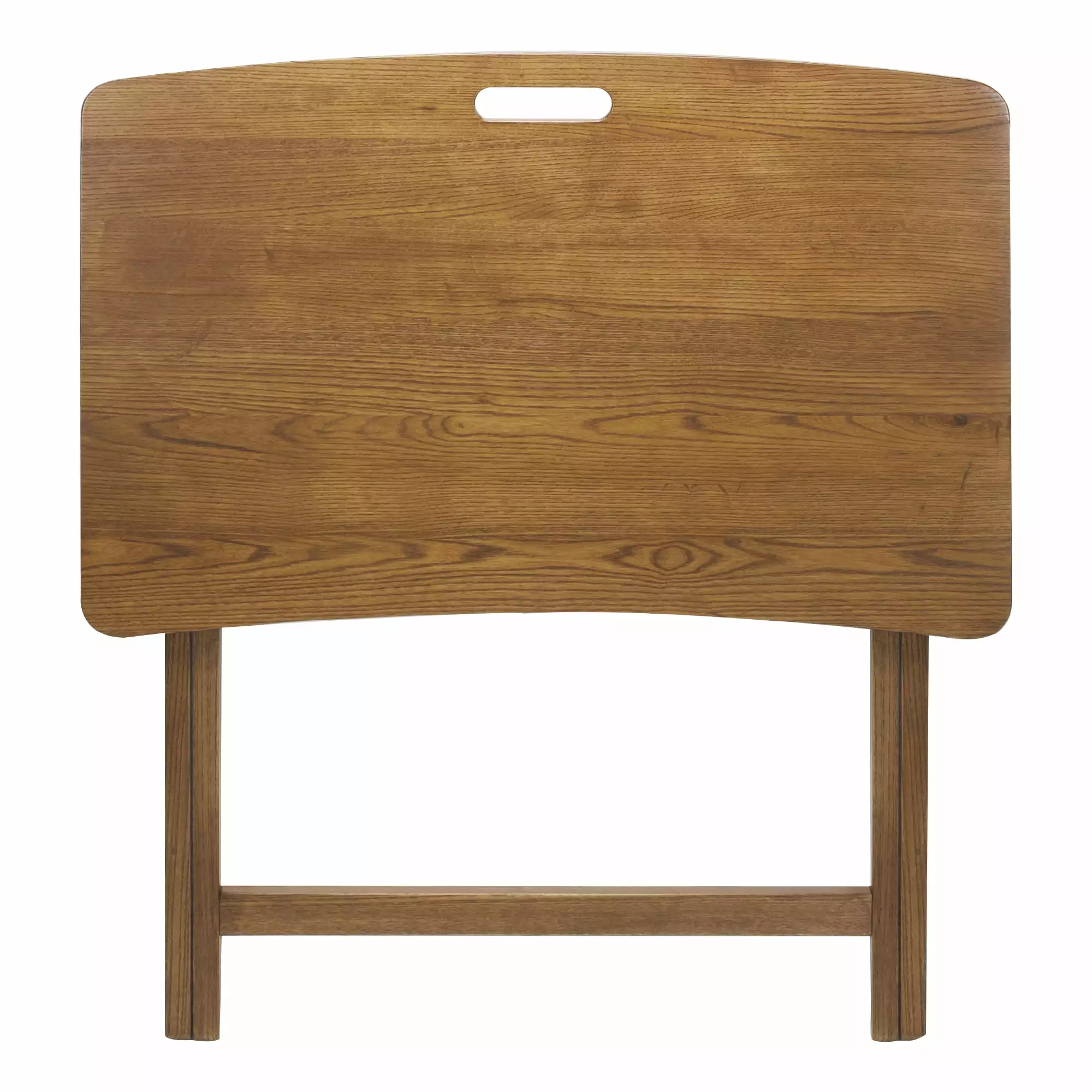Rich American Red Oak and solid wood comprise this fortified Folding Table designed for your constantly changing needs. The warm brown color brings a rich and cozy appeal to your room. Fit with a convenient handle for easy movement. And the strength of the Solid American Red Oak enables versatility across a range of uses.