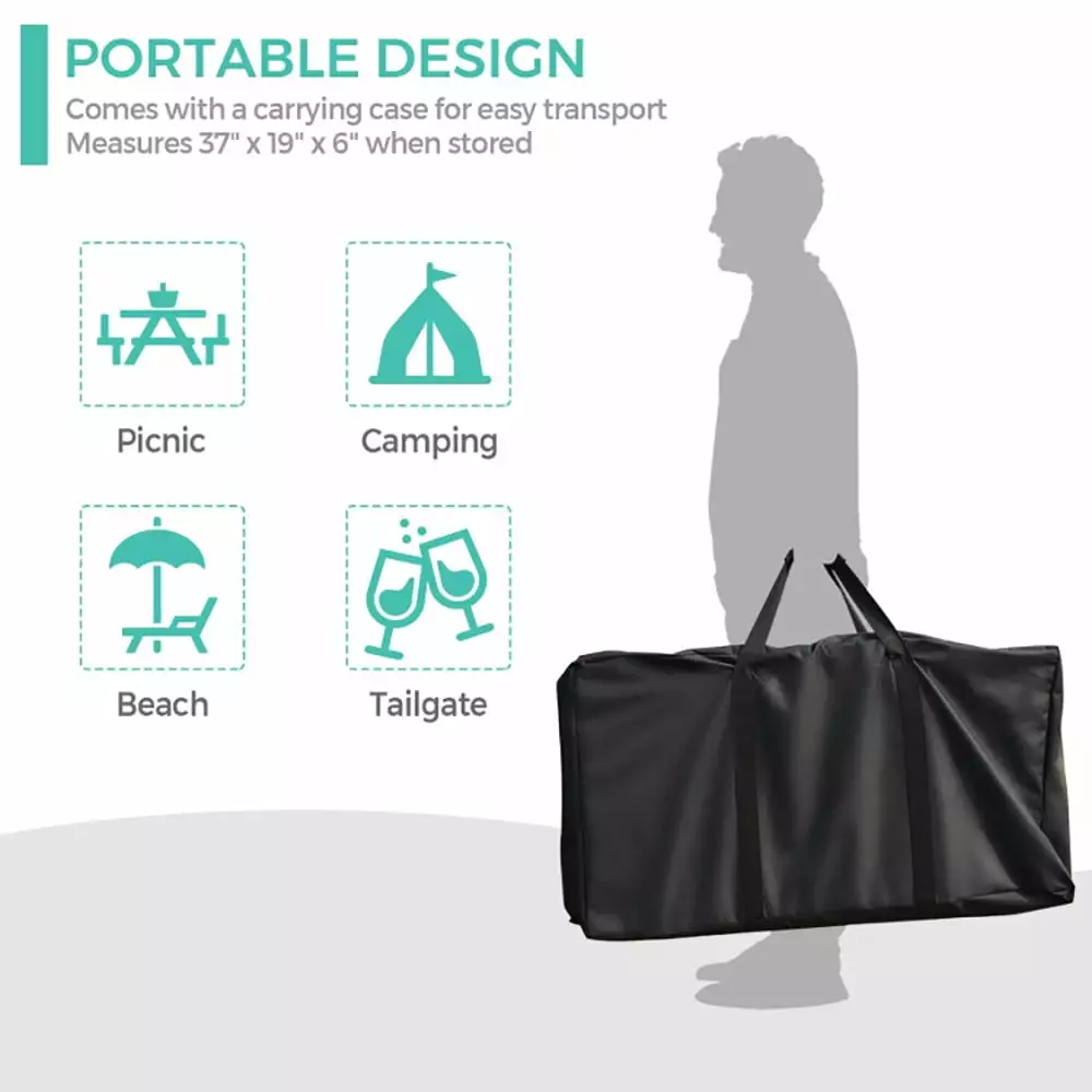 - Suitable for Anywhere: Including a portable carrying bag. you can put the folding table into the bag. This folding camping table makes it possible to grill anywhere. without the need for a stationary table. It’s perfect for BBQ. party. camping. picnics. backyards and tailgating.