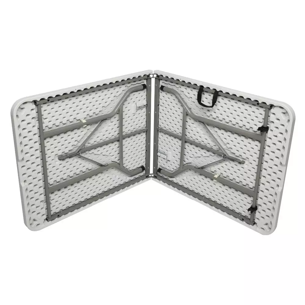 High-Density polyethylene tabletop is stain resistant. easy to clean and folds flat for storage