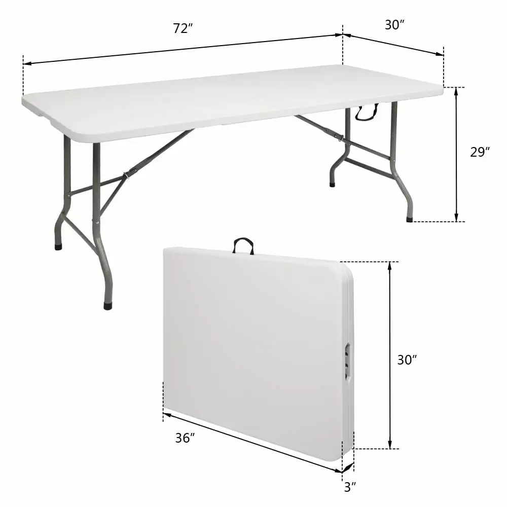 BaytoCare 6 Foot Fold-in-Half Table. White Granite