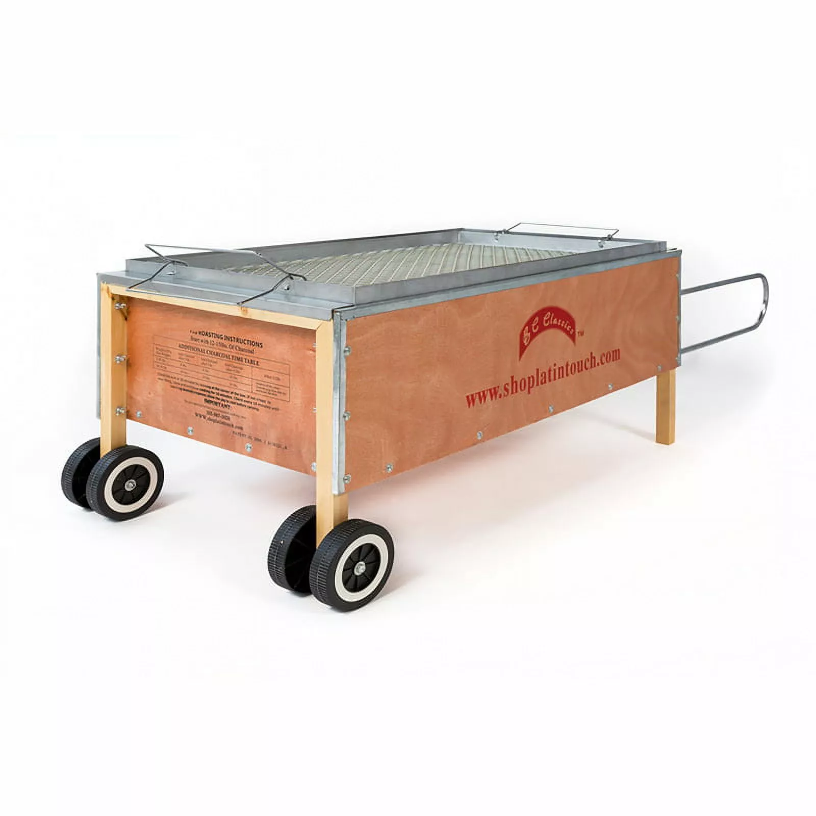 Known in Spanish as La Caja Asadora. our BC Classics Bene Casa Caja Asadora Large Pit Barbecue Portable Pig Roaster is a professional quality pig roaster. functioning as a Caja China or Cajun Microwave. The pig is placed inside the Caja China between two stainless steel racks. and cooks using the heat from charcoal or wood placed on top of the pig roasting box on a stainless steel grill. The grilling racks are secured with four stainless steel hooks that hold the meat in place and make flipping the pig much easier. Cooking times in these roasters typically vary between three and four hours depending on the size of the pig and the amount of charcoal used. Included on each box is a laminated graph with recommended charcoal amounts depending on the weight of the hog. This roaster cooks up to 70-80 lb Pig. but can also hold 16-18 whole chickens. 4-6 turkeys. 8-10 pork rib slabs or pork shoulders. or any other type of meat or fish! The possibilities are endless with the BC Classics Bene Casa Caja Asadora Large Pit Barbecue Portable Pig Roaster.