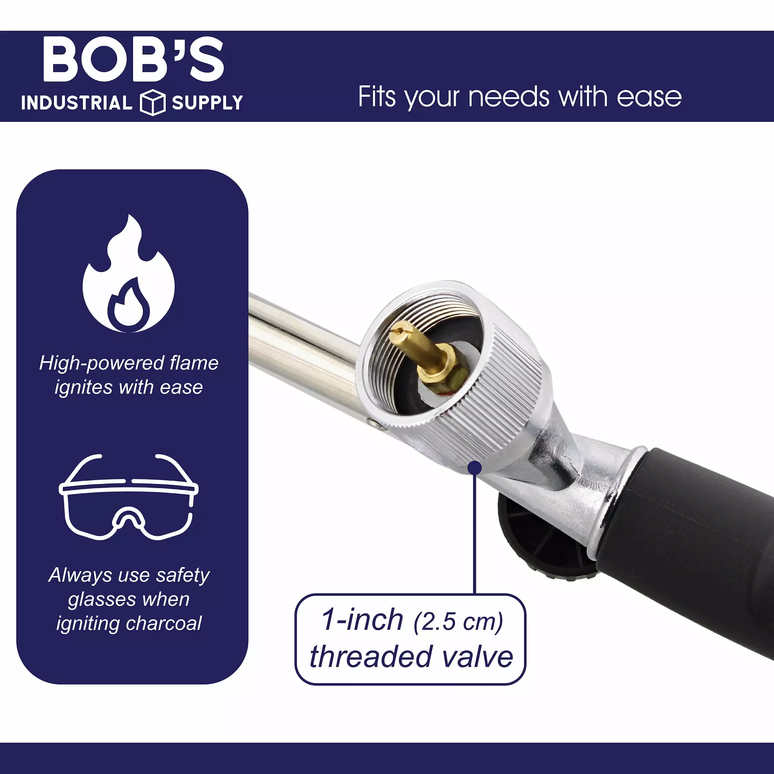 Don’t waste time when lighting charcoal. Use the BISupply 18-inch Cordless Briquette Lighter Lump Charcoal Starter Torch to deliver powerful and continuous high-heat flames for lighting coal lumps. briquettes. and wood kindling. The long 8-inch tube and 3-inch burner head ensure your hands stay far from the flame while the molded handle provides maximum comfort and control. Attach to a 1lb. propane tank. push the ignition button to produce a flame that lights your charcoal in just a few short minutes. Regulating knob allows you control the gas flow to affect the flame size and intensity. Angled design then allows you to place the canister on any flat surface for later use. Pairs perfectly with your barbecue smoker. outdoor oven. chimney. fireplace. fire pit. tailgating grills. and more.