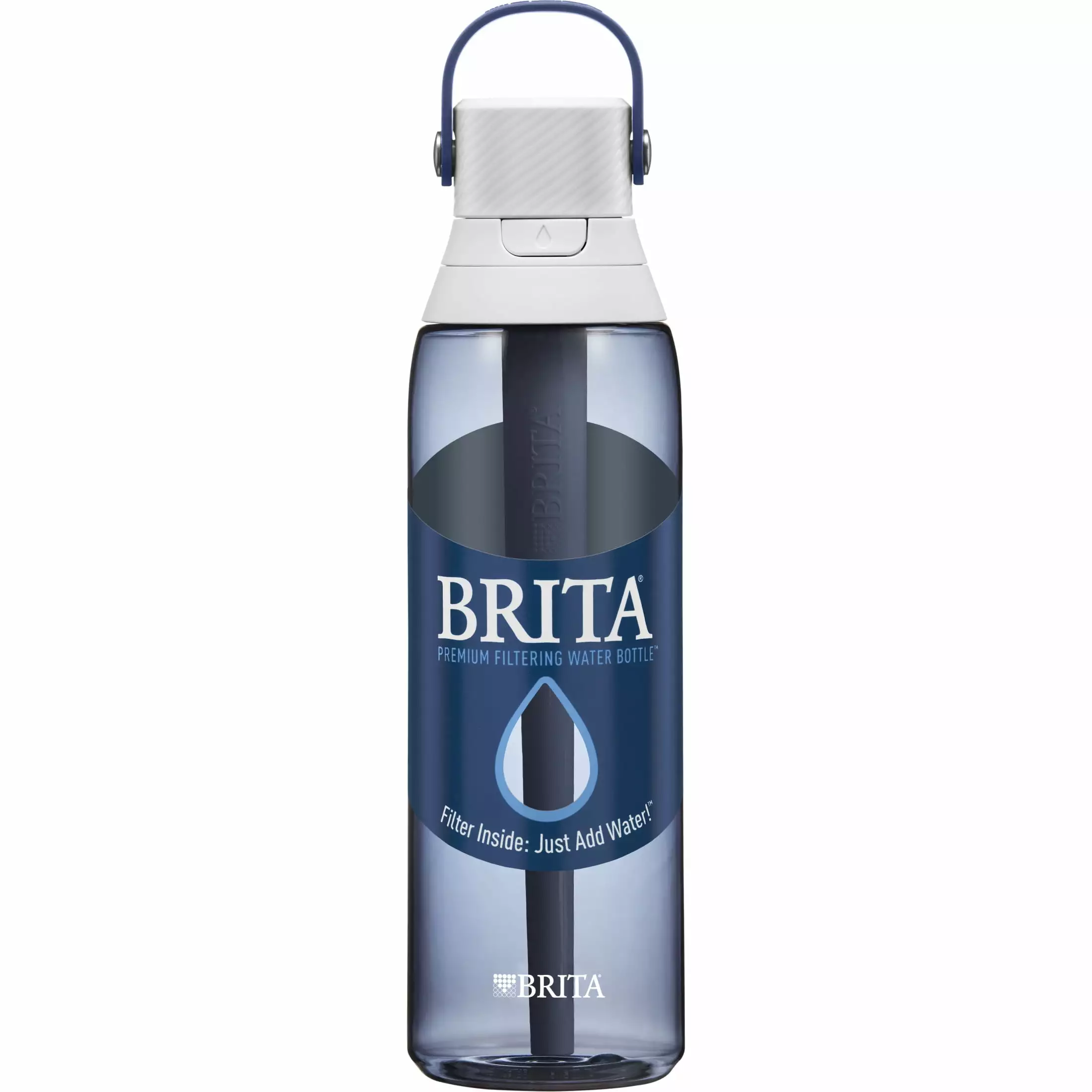 Drink healthier. great-tasting tap water with the BPA-free Brita Hard-Sided Plastic Premium Filtering Water Bottle. This filtered water bottle utilizes an activated carbon block filter to cut the taste and odor of chlorine and reduce particulates in water as you drink. You can also replace 300 standard 16.9-oz. single-use plastic water bottles with just one water bottle filter. It’s an easy way to stay hydrated. save money and reduce plastic waste. Created for effortless convenience. this leakproof water filter bottle features an enclosed. easy-sip straw. a built-in carrying loop for grab-and-go portability and a one-handed push-button lid. Enjoy hassle-free hydration anywhere: at home. the office. a sporting event. or at the gym. Brita filtering bottles are easy to clean and dishwasher safe. This water bottle is compatible with Brita water bottle replacement filters. which should be changed every 40 gallons or about every two months. Get great taste. less waste and more savings from Brita.